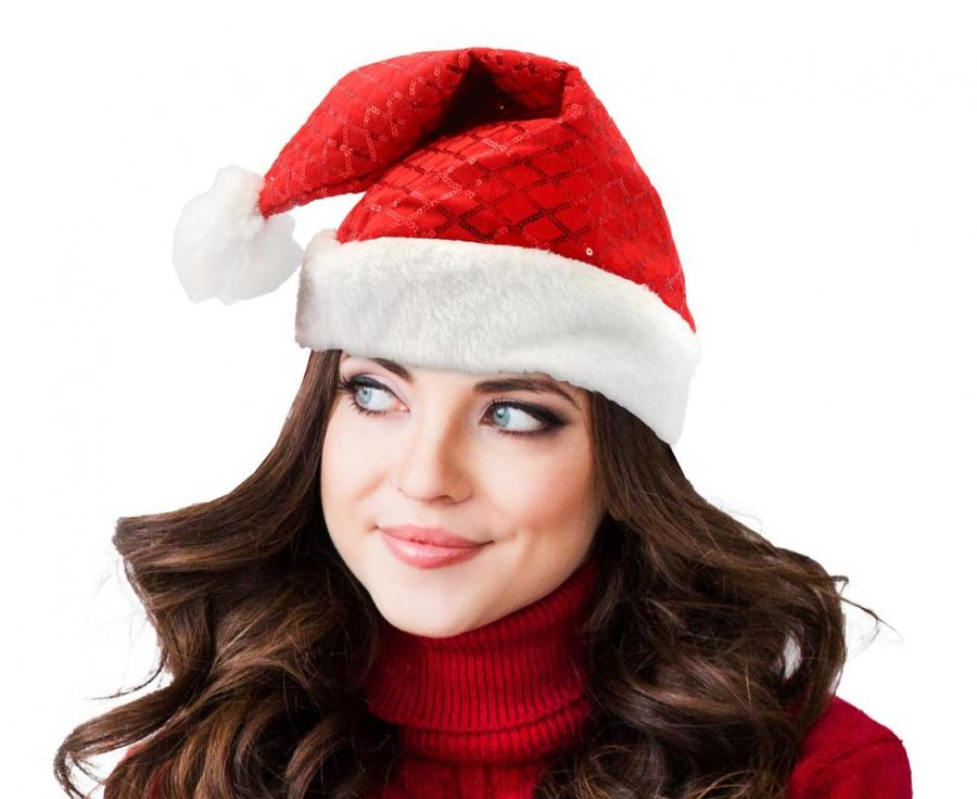 Czapka Mikołaja błyszcząca czerwone cekiny 30 cm x 42 cm