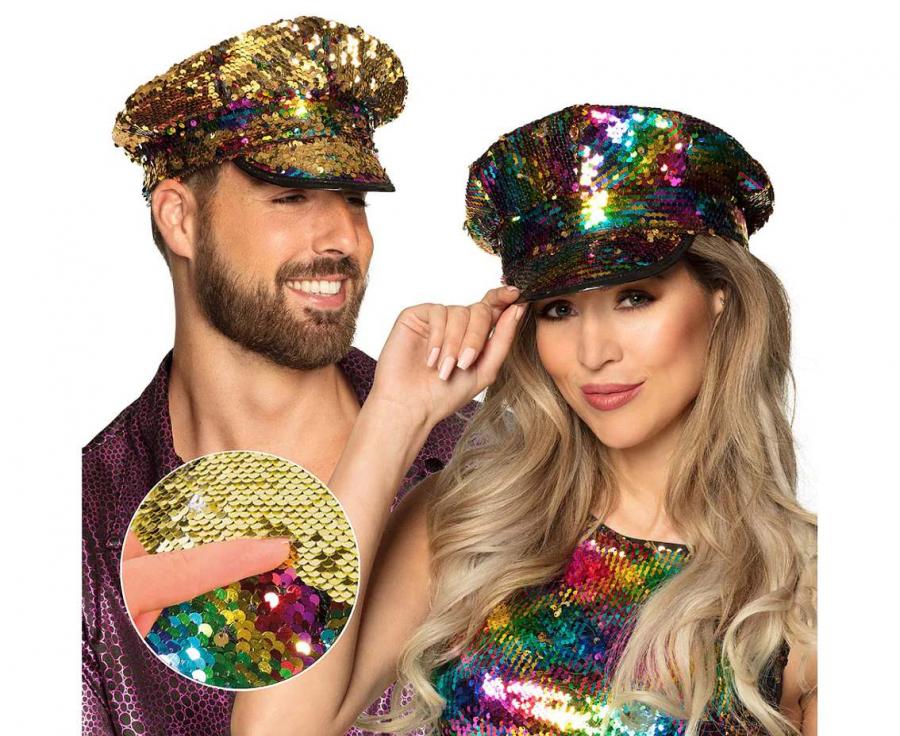 Czapka dla dorosłych z cekinami złota/tęczowa