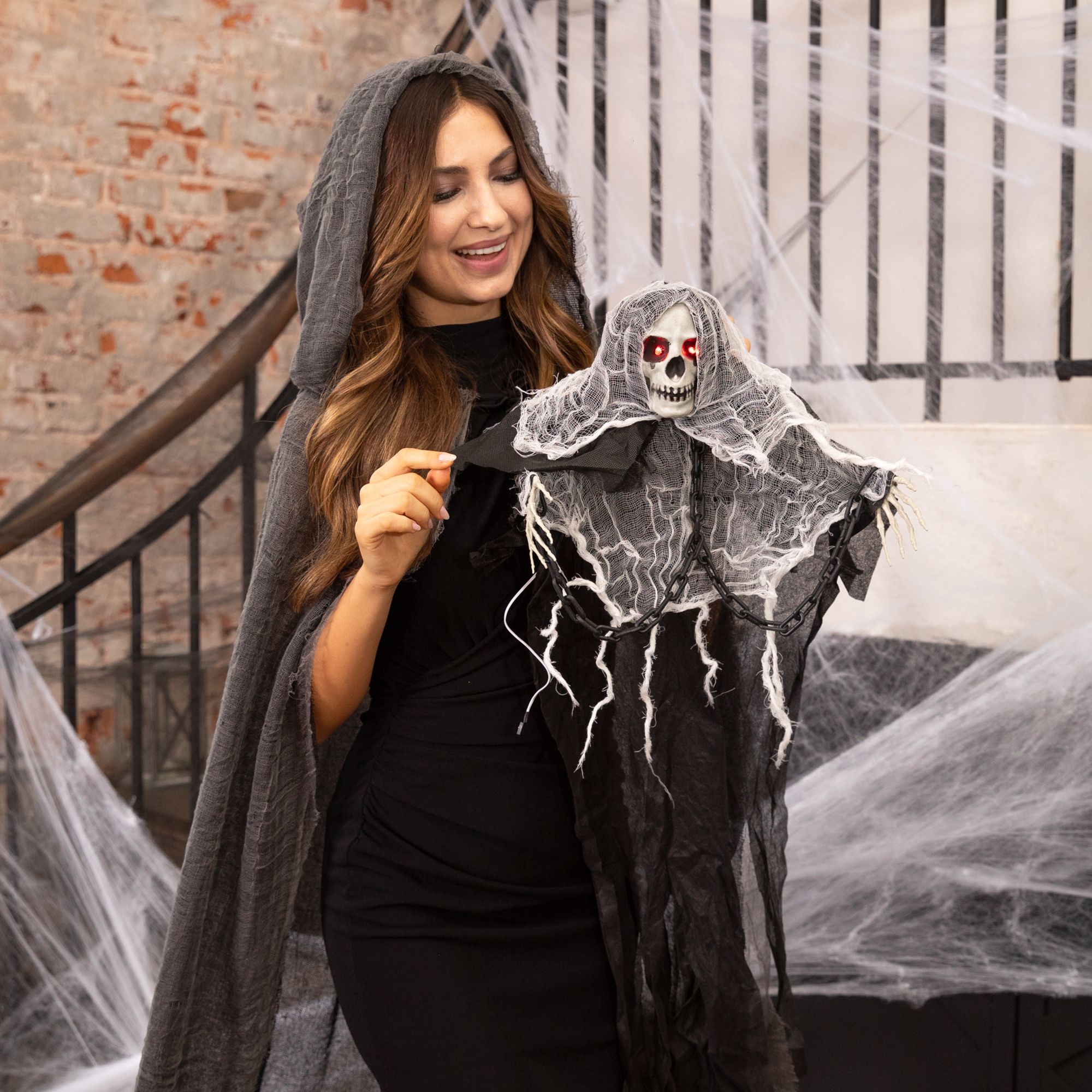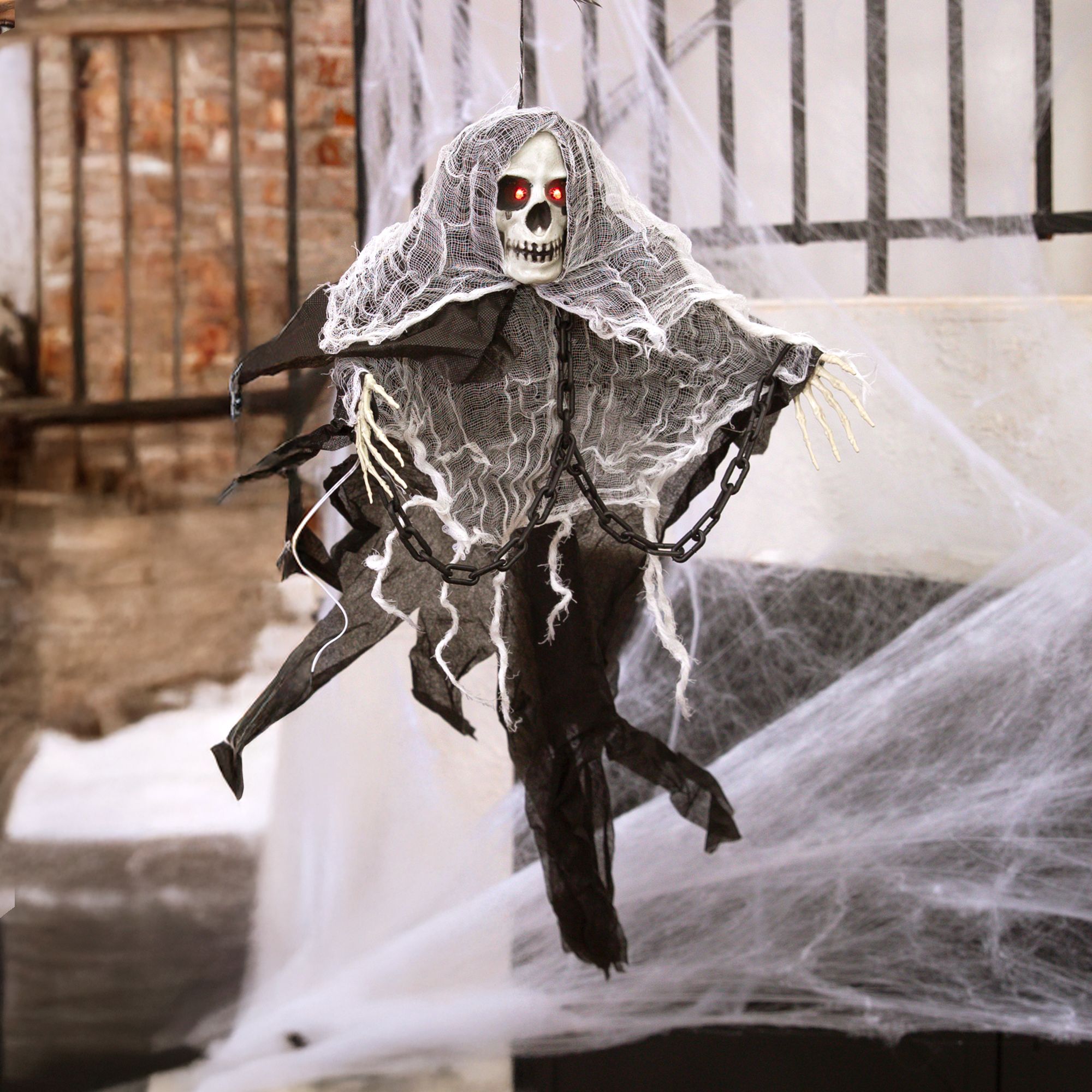 Dekoracja Halloween wiszący Kościotrup świecące oczy z dźwiękiem