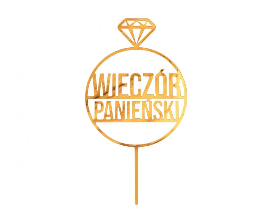 Dekoracja akrylowa na tort Wieczór Panieński złota 10 cm x 18 cm