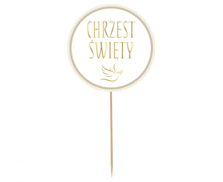 Dekoracja papierowa na tort Chrzest Święty - gołąbek 14 cm