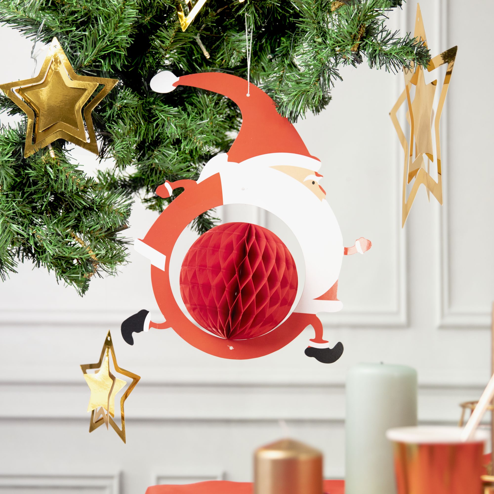 Dekoracja świąteczna honeycomb biegnący Św. Mikołaj