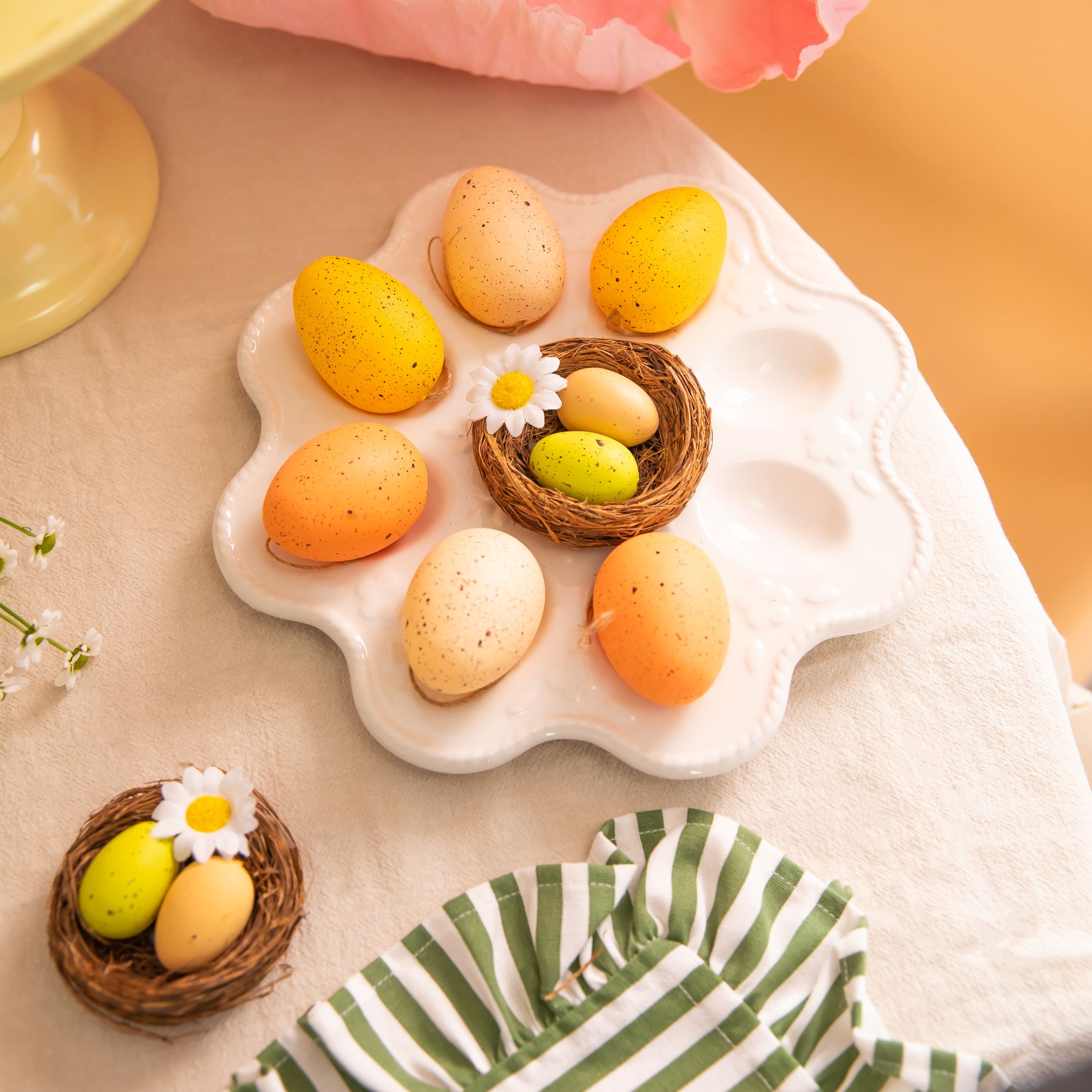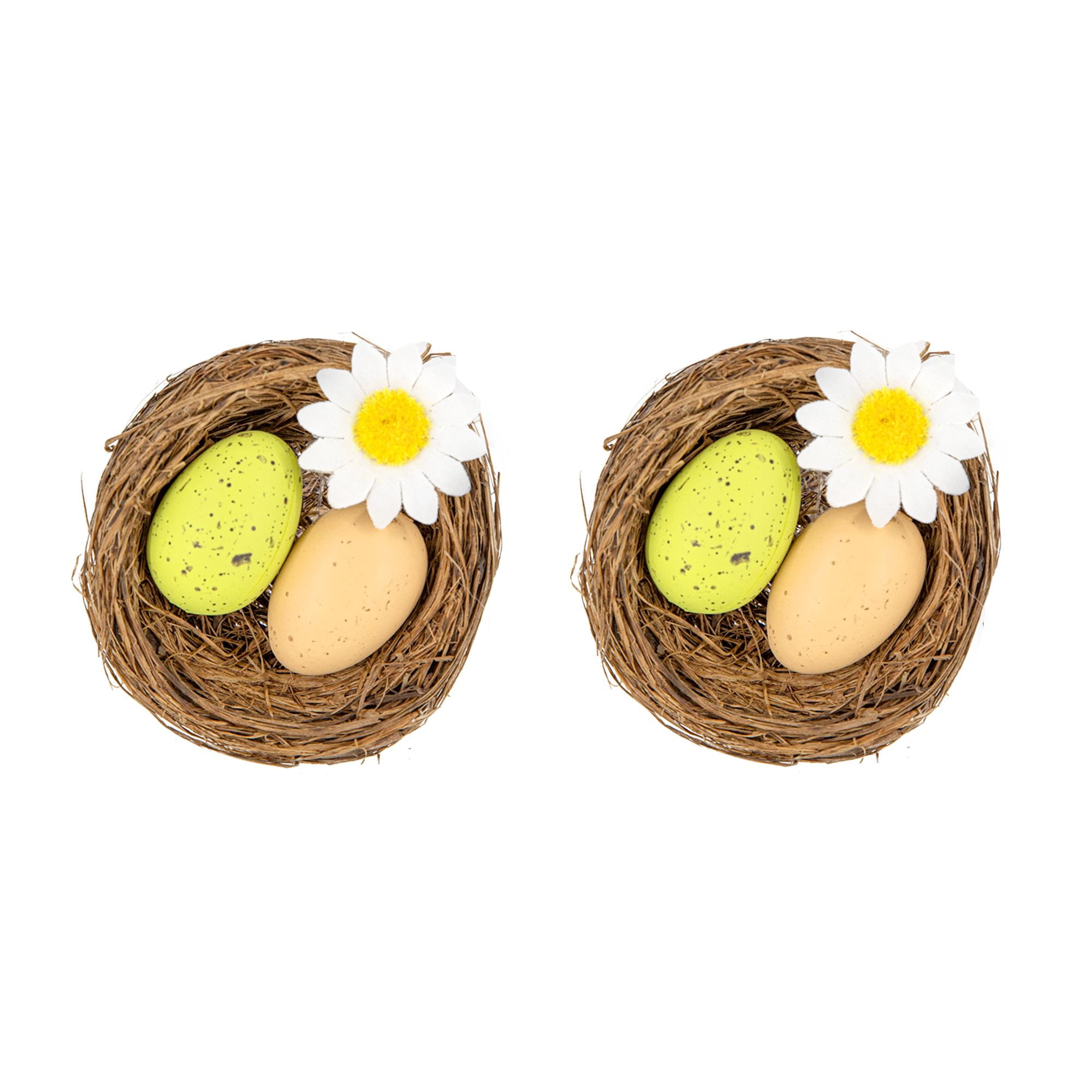 Dekoracje wielkanocne Jajka w gniazdkach z kwiatkiem 2 kolory brąz 2 szt