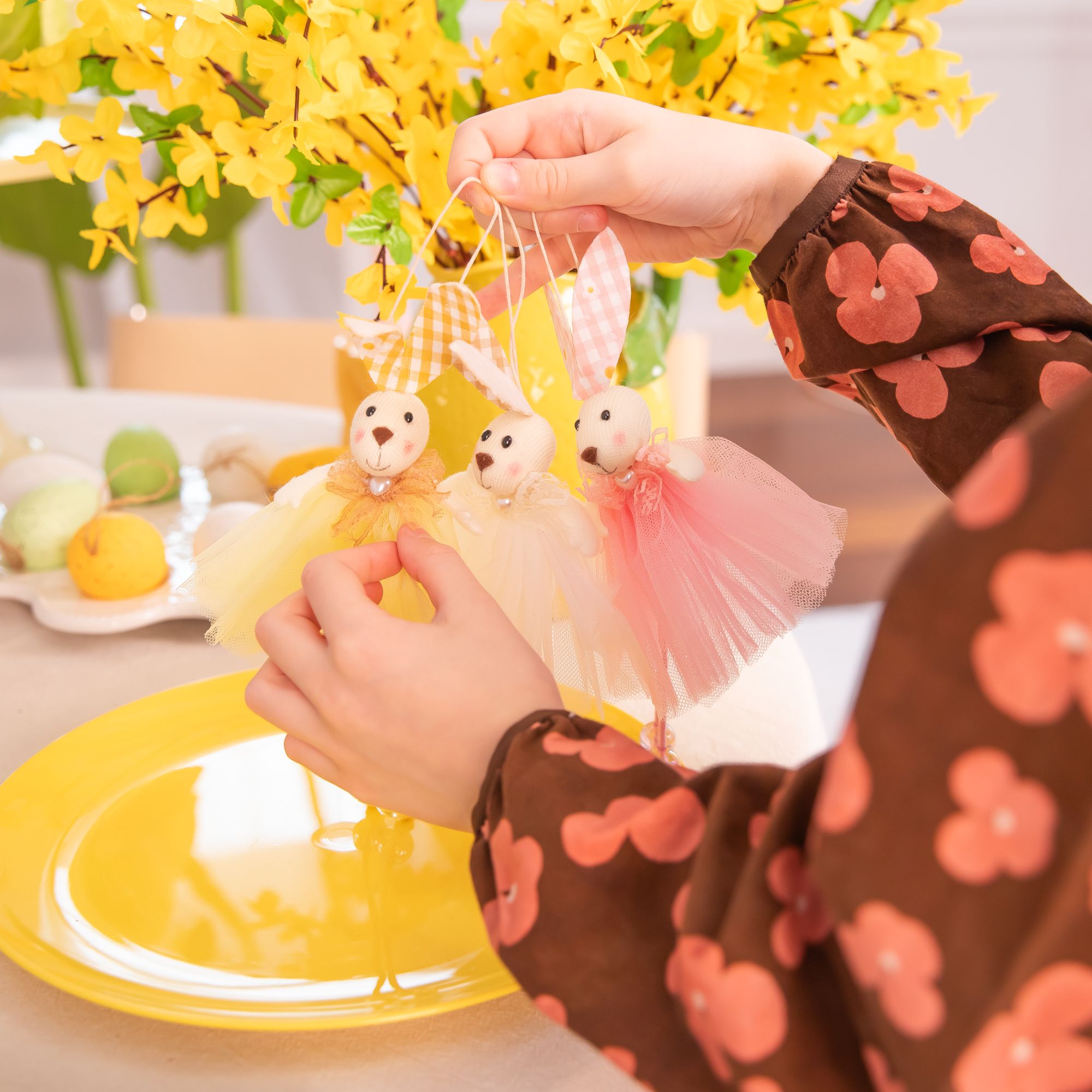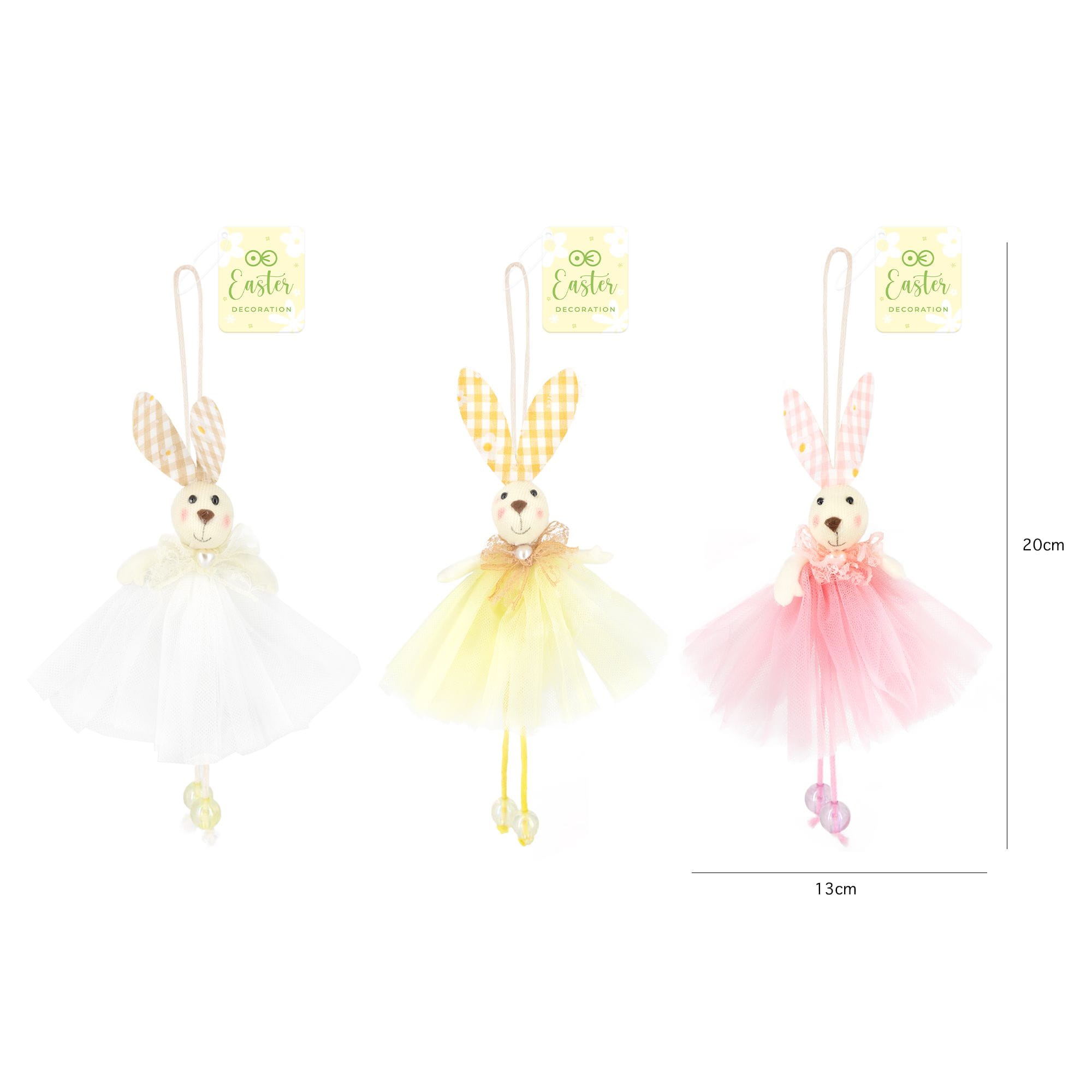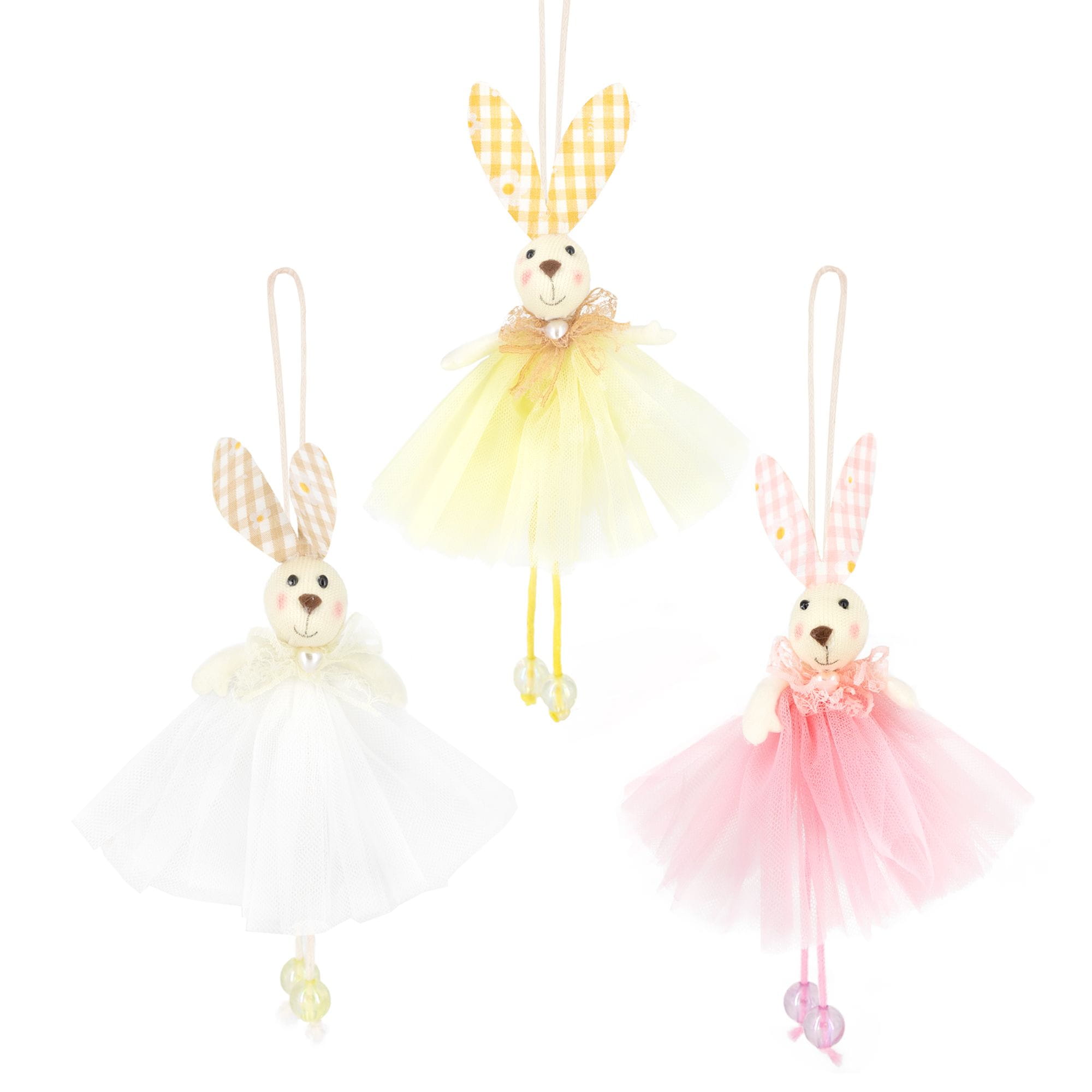 Dekoracje wielkanocne Zawieszki zajączki w kolorowych spódniczkach 1 szt
