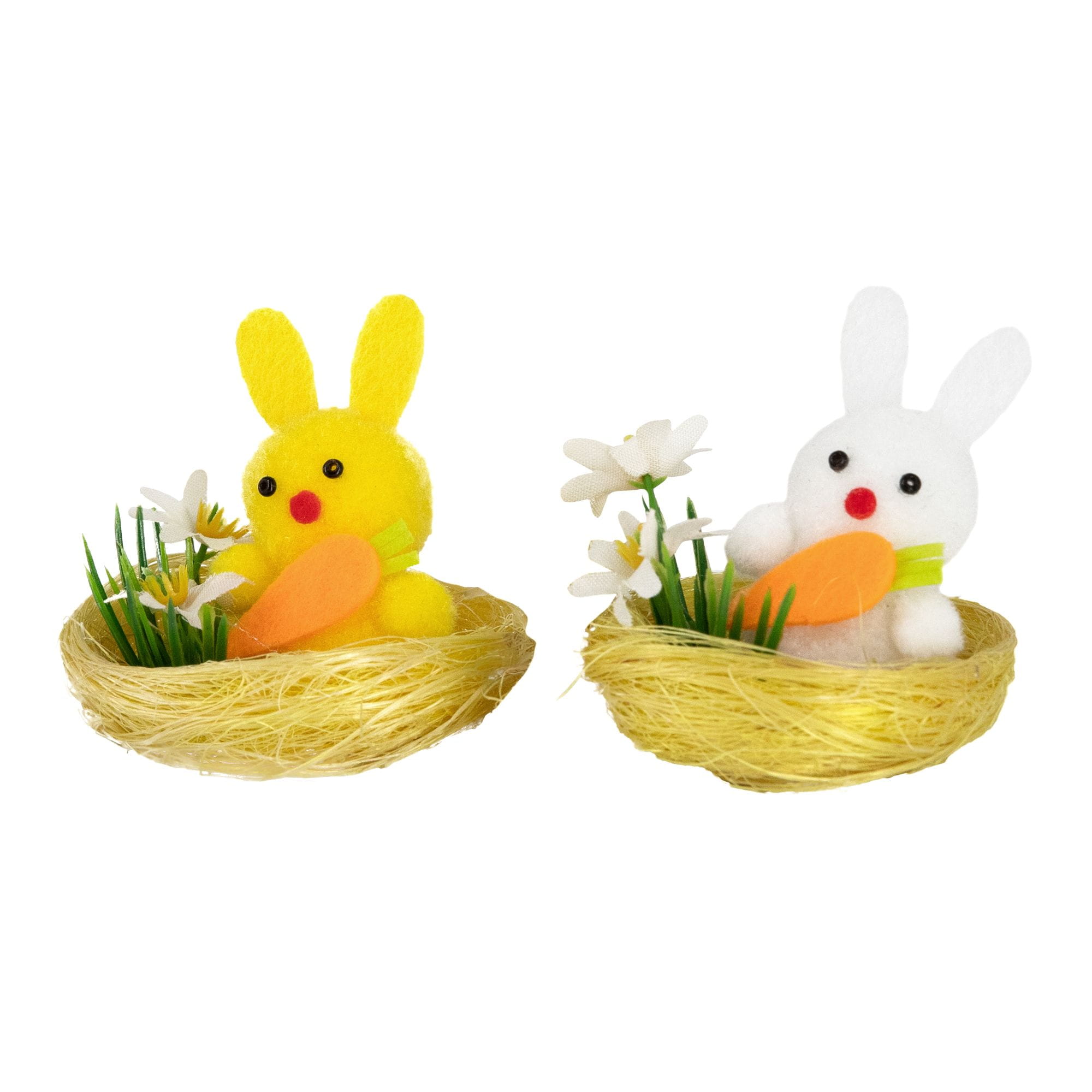 Dekoracje wielkanocne pudełko Zajączek z marchewką w koszyku 2 szt