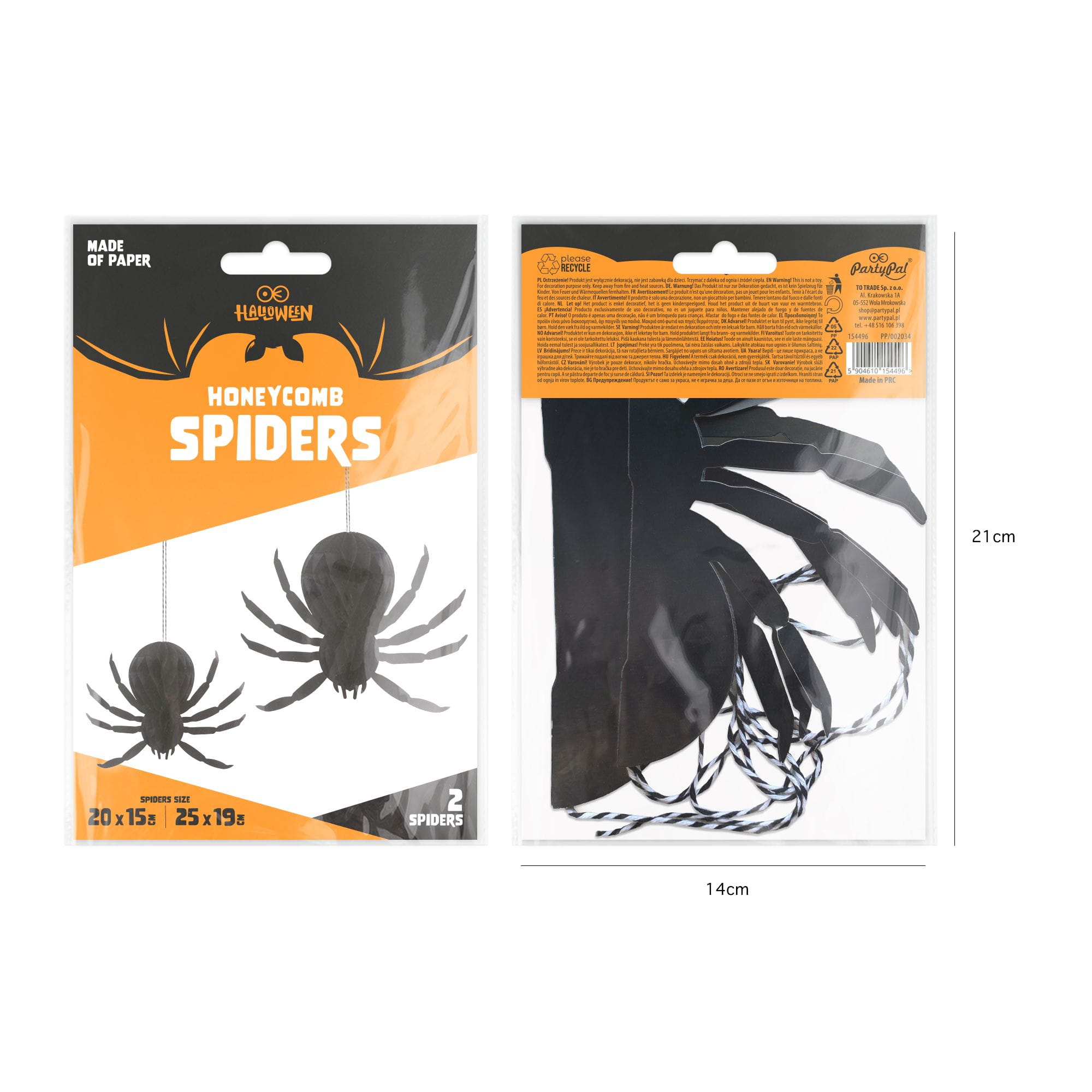 Dekoracje wiszące Halloween Pająki honeycomb czarne 2 szt