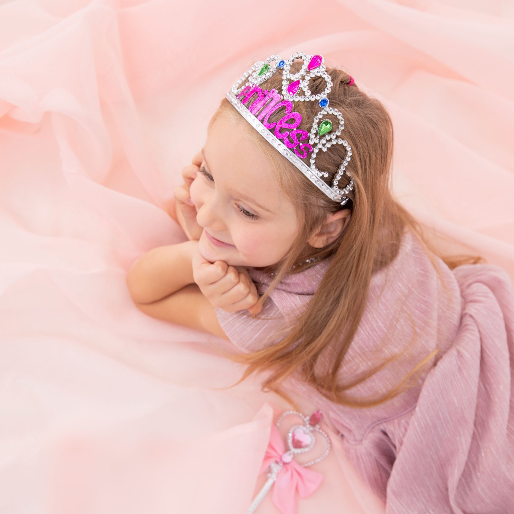 Diadem Princess z kolorowymi klejnotami srebrny