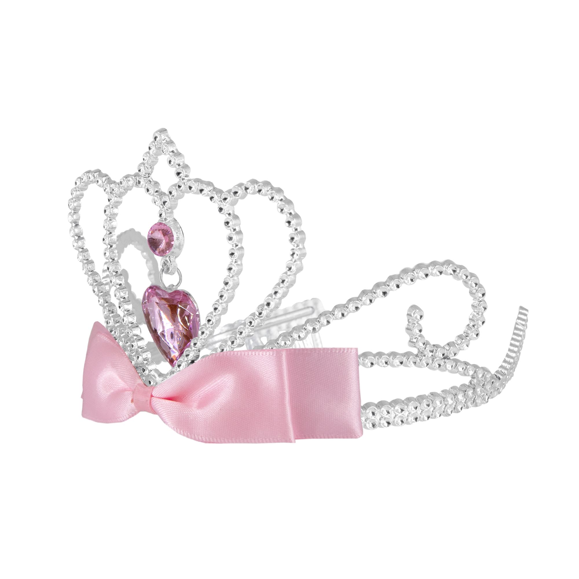 Diadem z różowymi klejnotami i kokardą srebrny