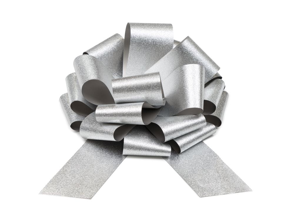 Duża kokarda na prezent srebrna 30 cm 1 szt