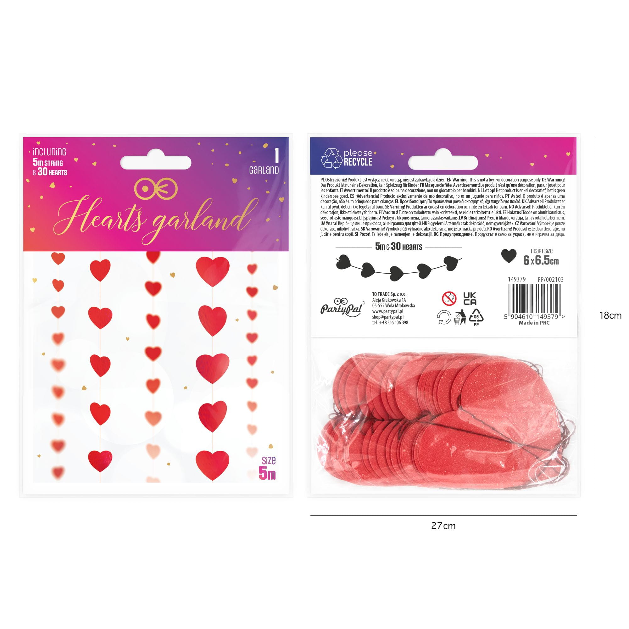 - 30 papierowych serduszek 6,5x6 cm, sznureczek 5 m