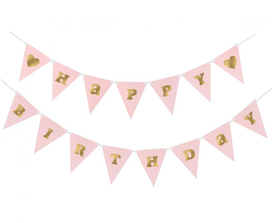 Girlanda papierowa Happy Birthday - Baby Girl jasnoróżowa 300 cm
