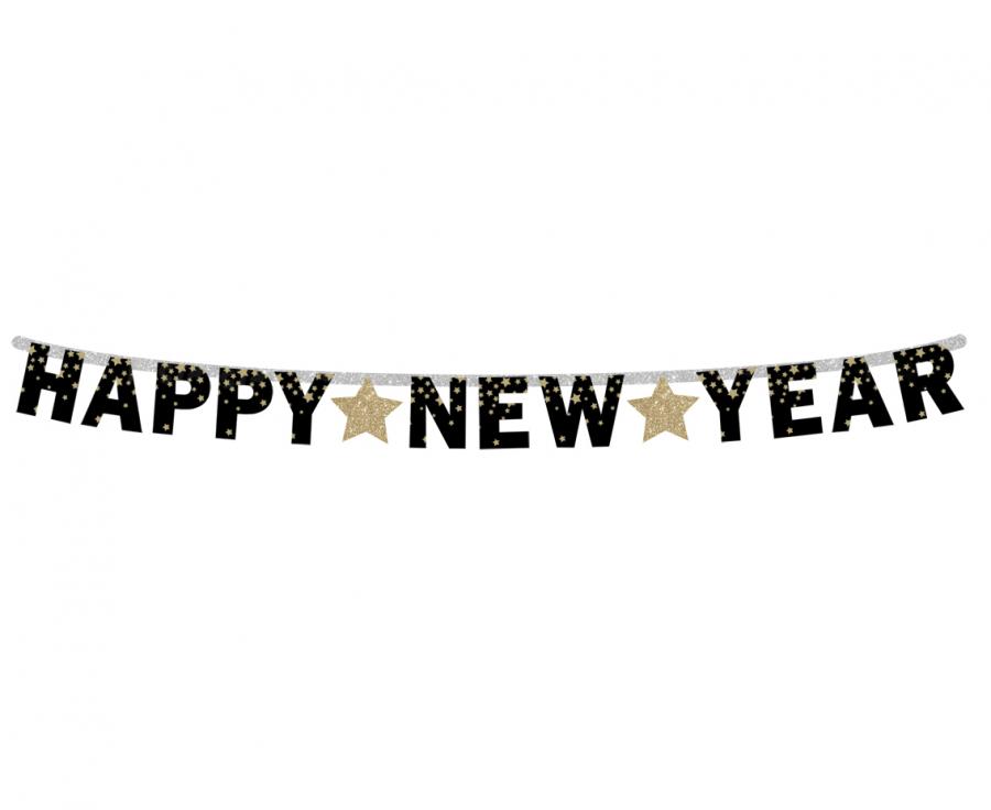 Girlanda papierowa Happy New Year - Złote gwiazdki 180 cm