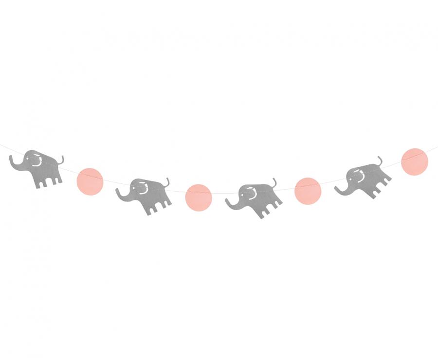 Girlanda papierowa Słoniki różowa 200 cm