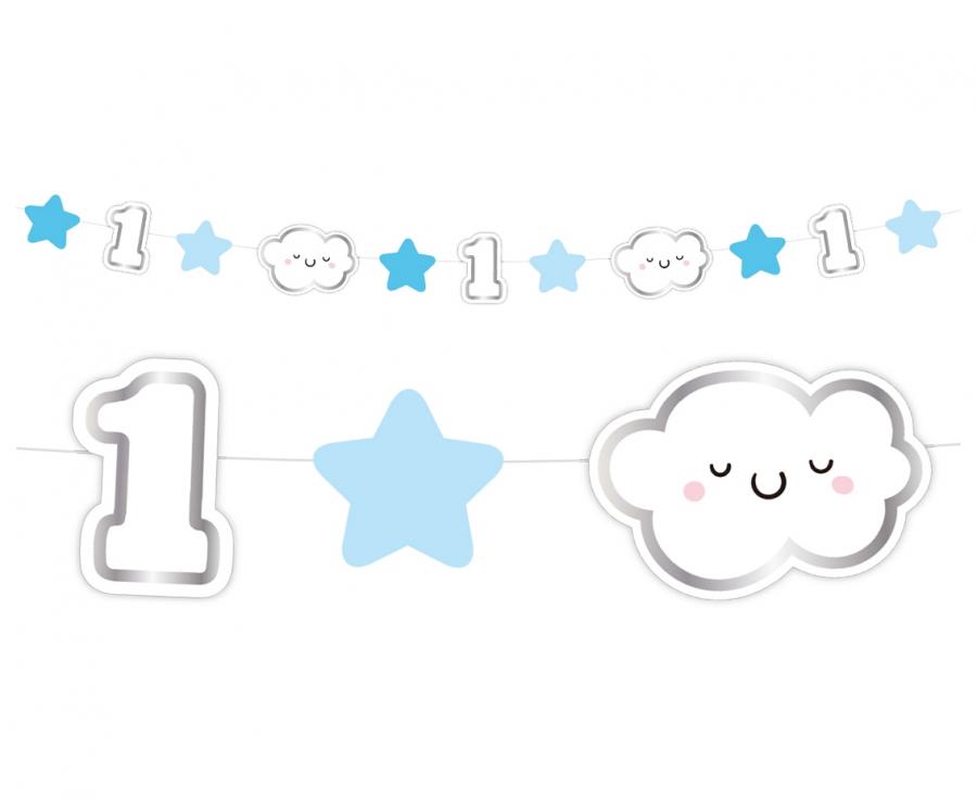 Girlanda papierowa mini Roczek niebieska 120 cm