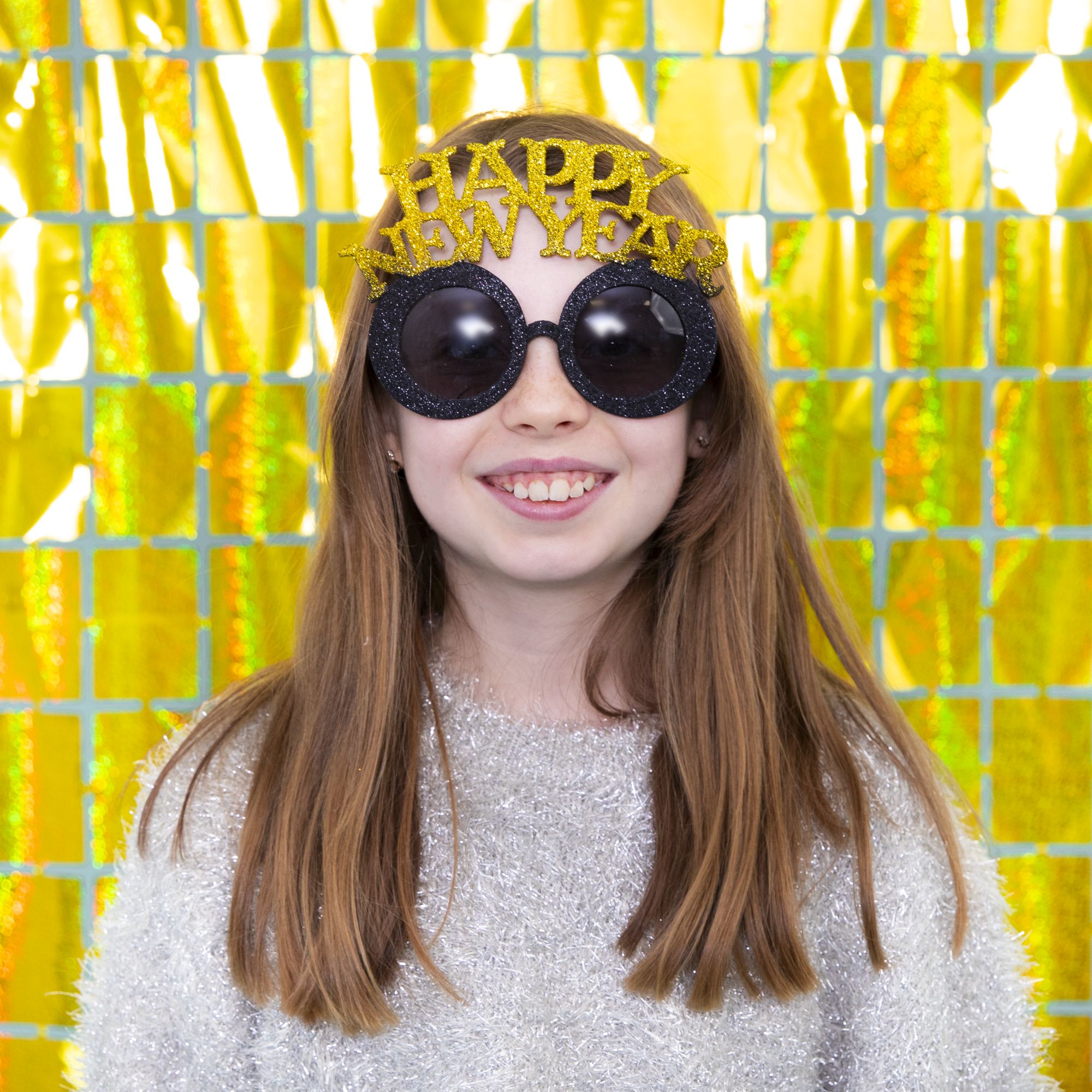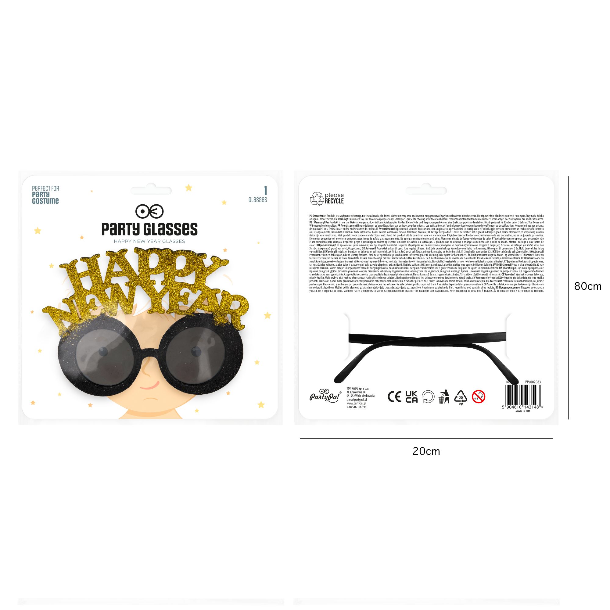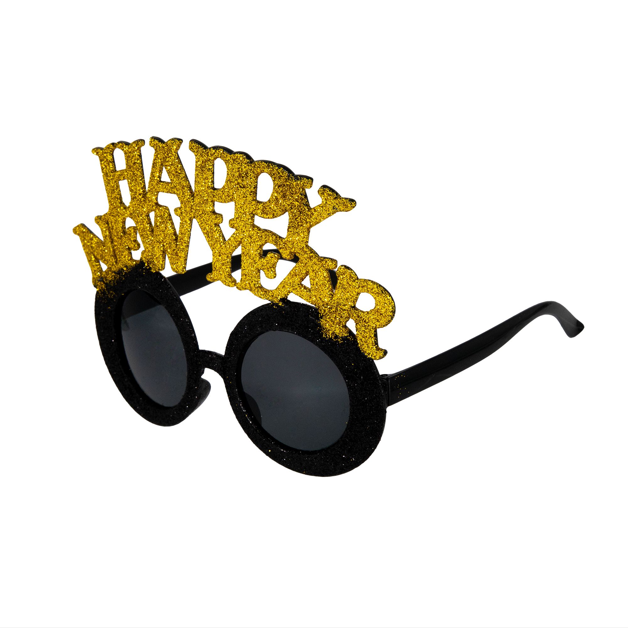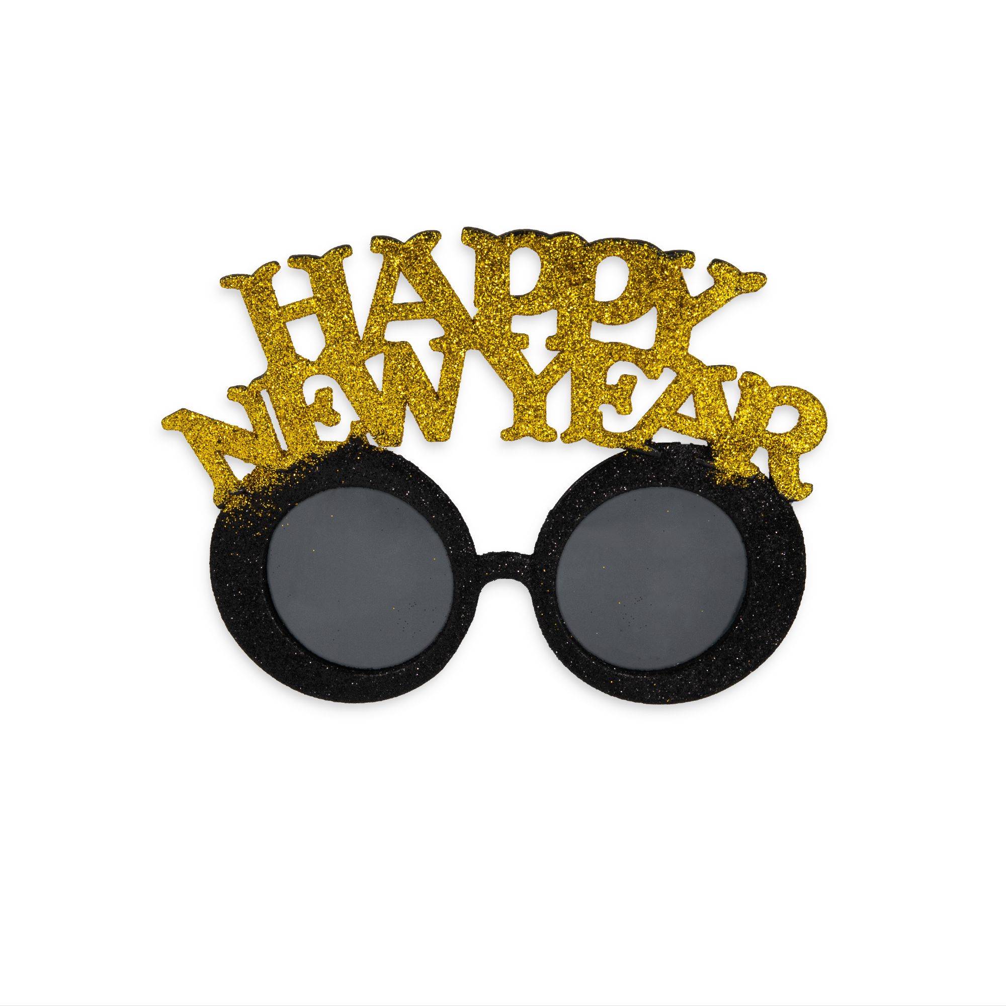 Imprezowe okulary Happy New Year czarno-złote 1 szt
