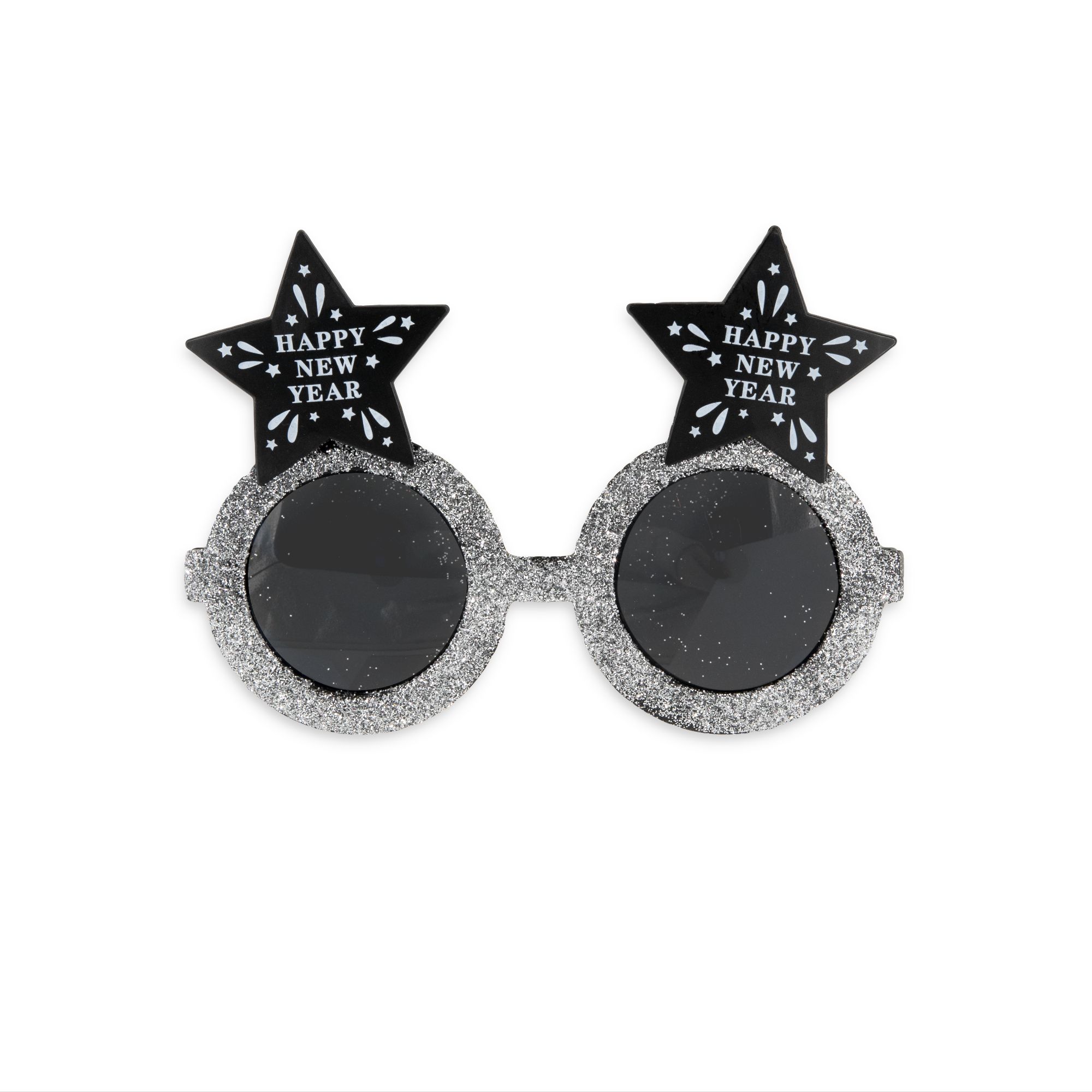 Imprezowe okulary Happy New Year gwiazdki czarno-srebrne 1 szt