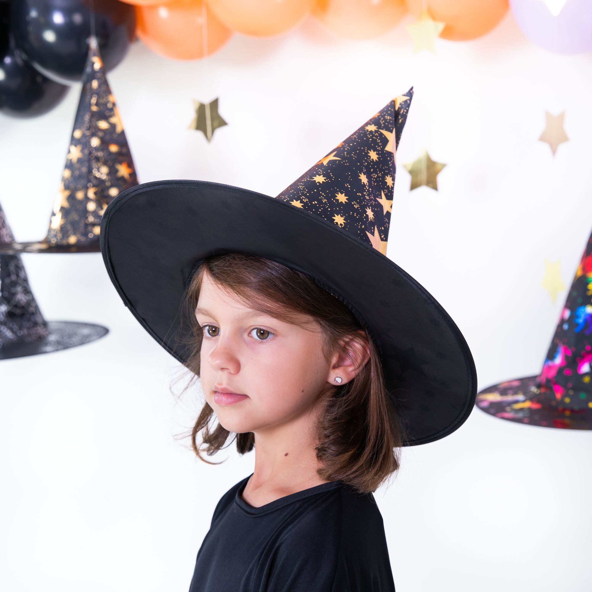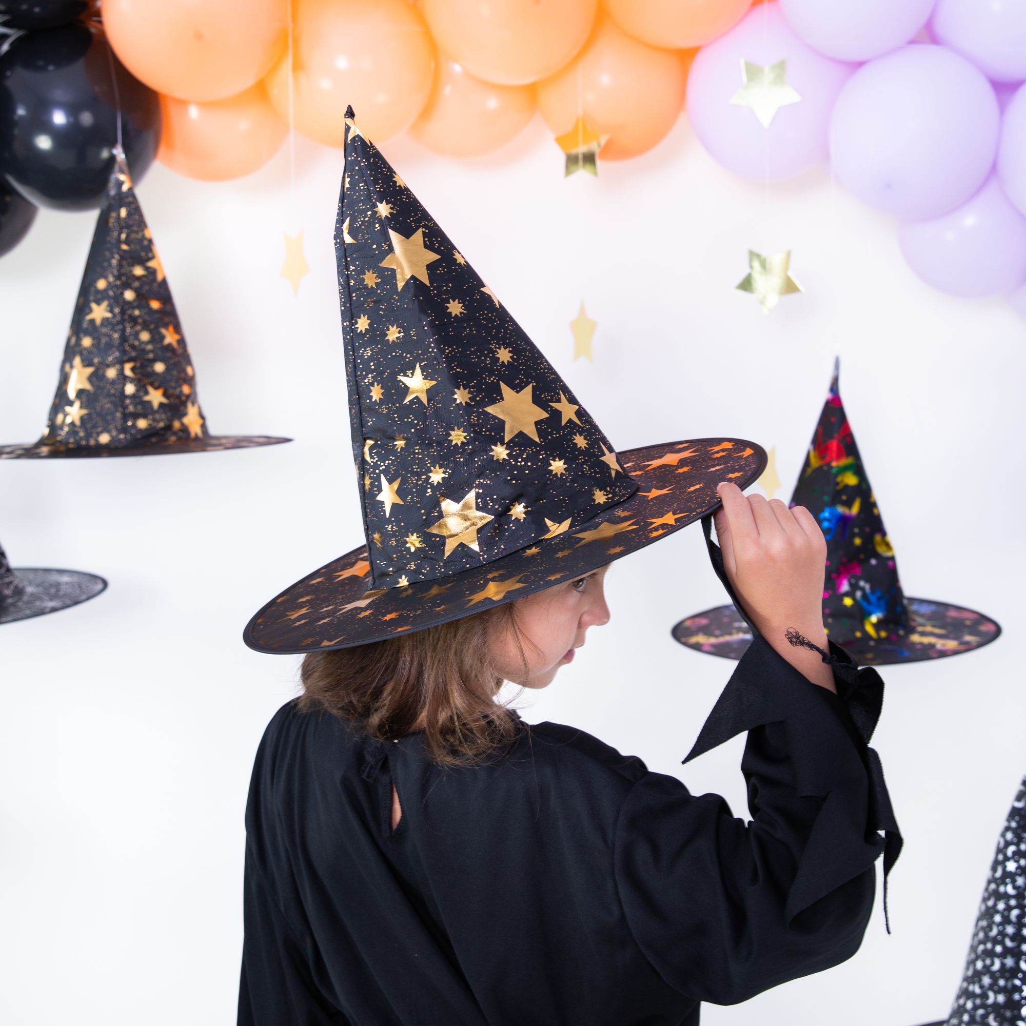 Kapelusz czarownicy Gwiazdki czarno-złoty