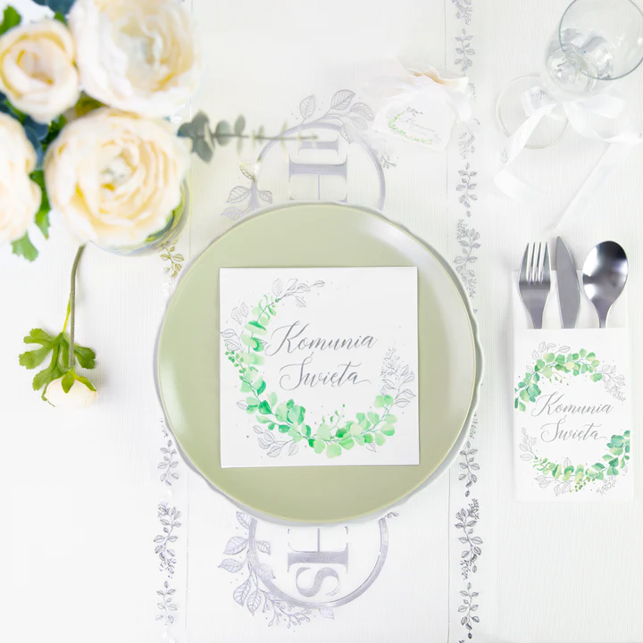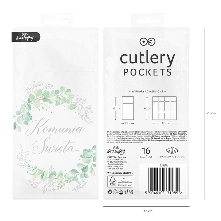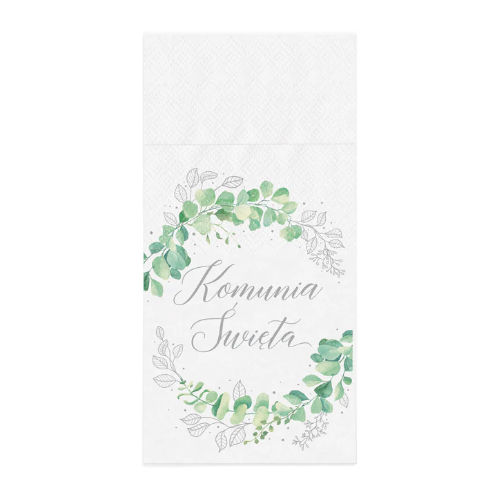 Kieszonki na sztućce Komunia Święta Eukaliptus 16 szt