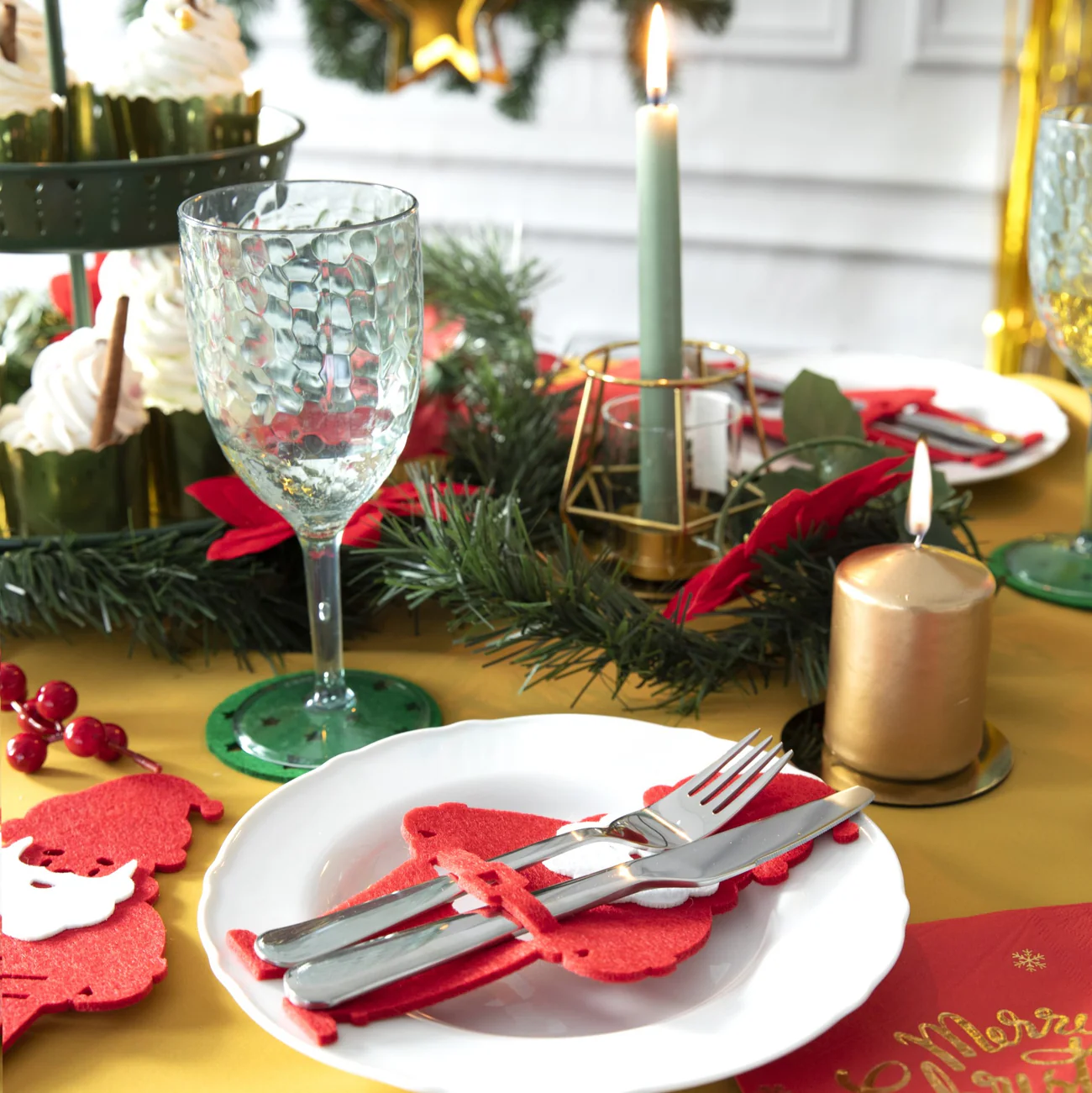 Kieszonki świąteczne pod sztućce Mikołaj czerwone 6 szt