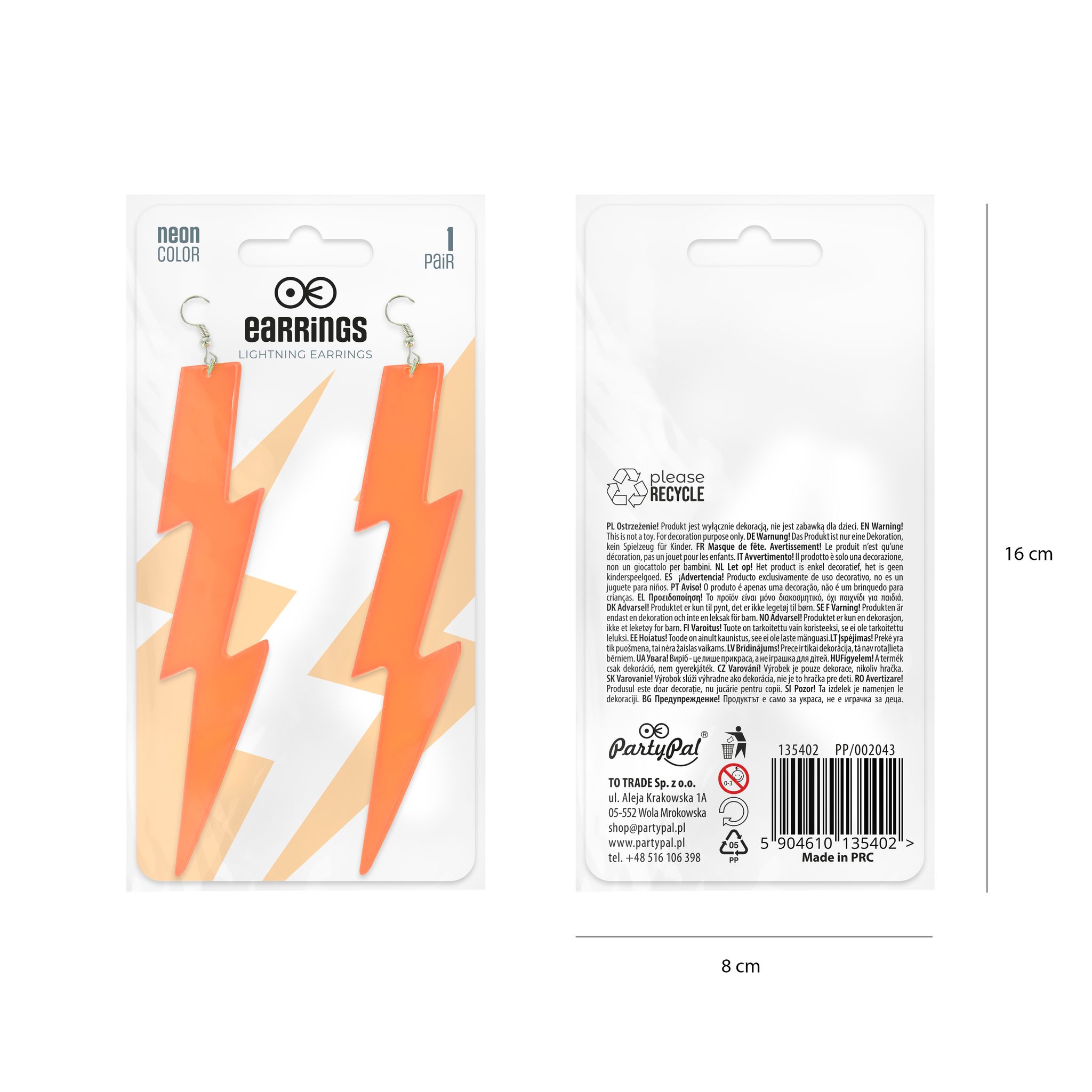 Kolczyki neonowe Błyskawice pomarańczowe 12 cm