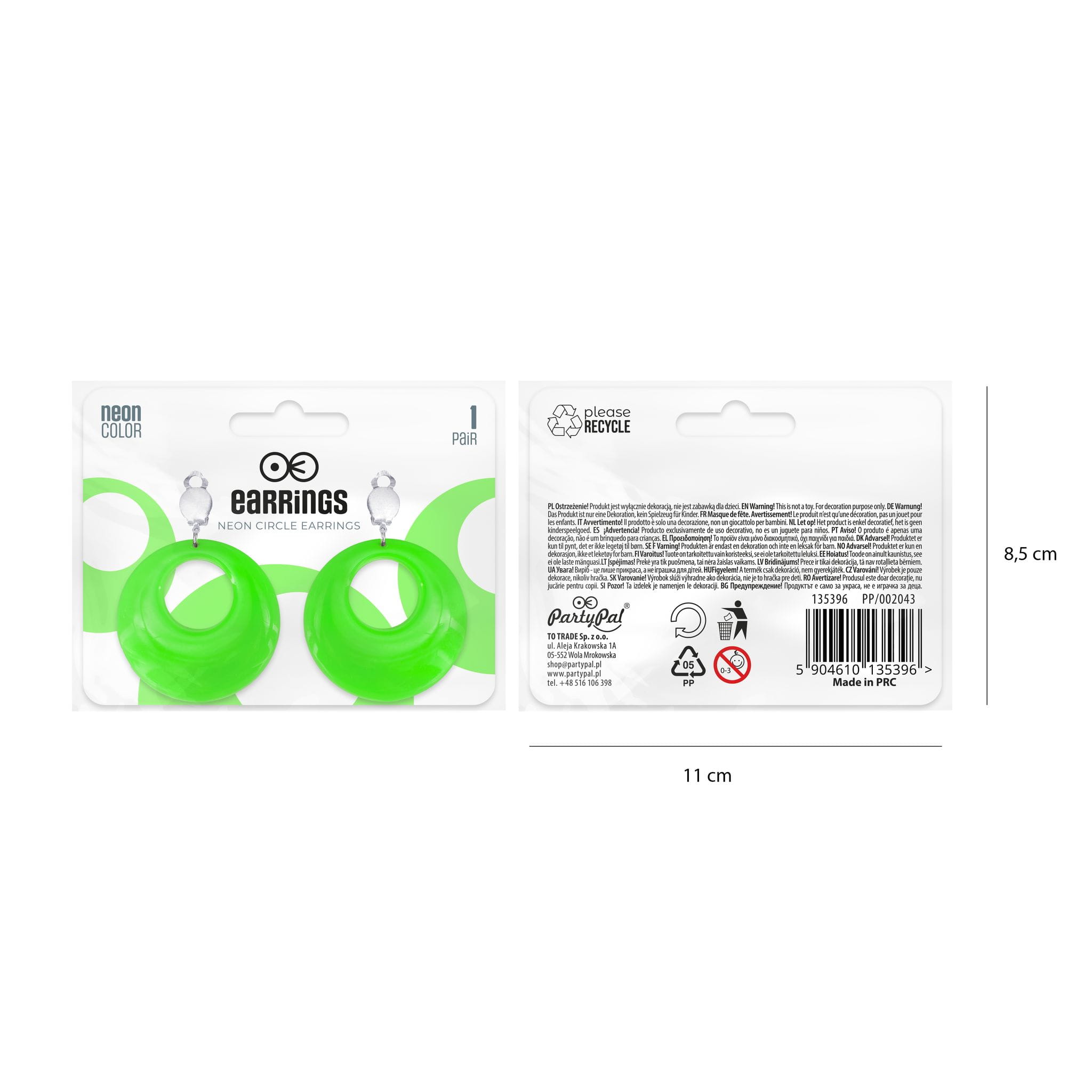 Kolczyki neonowe Koła zielone klipsy 4,5 cm
