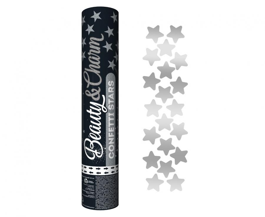 Konfetti pneumatyczne Srebrne Gwiazdki 30 cm