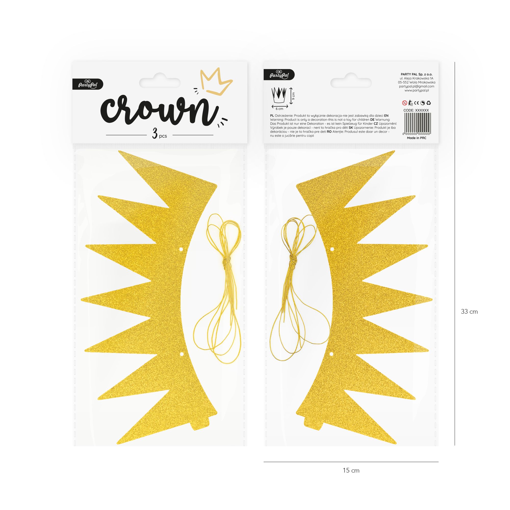 Korona plastikowa Księżniczka brokatowa złota 3 szt