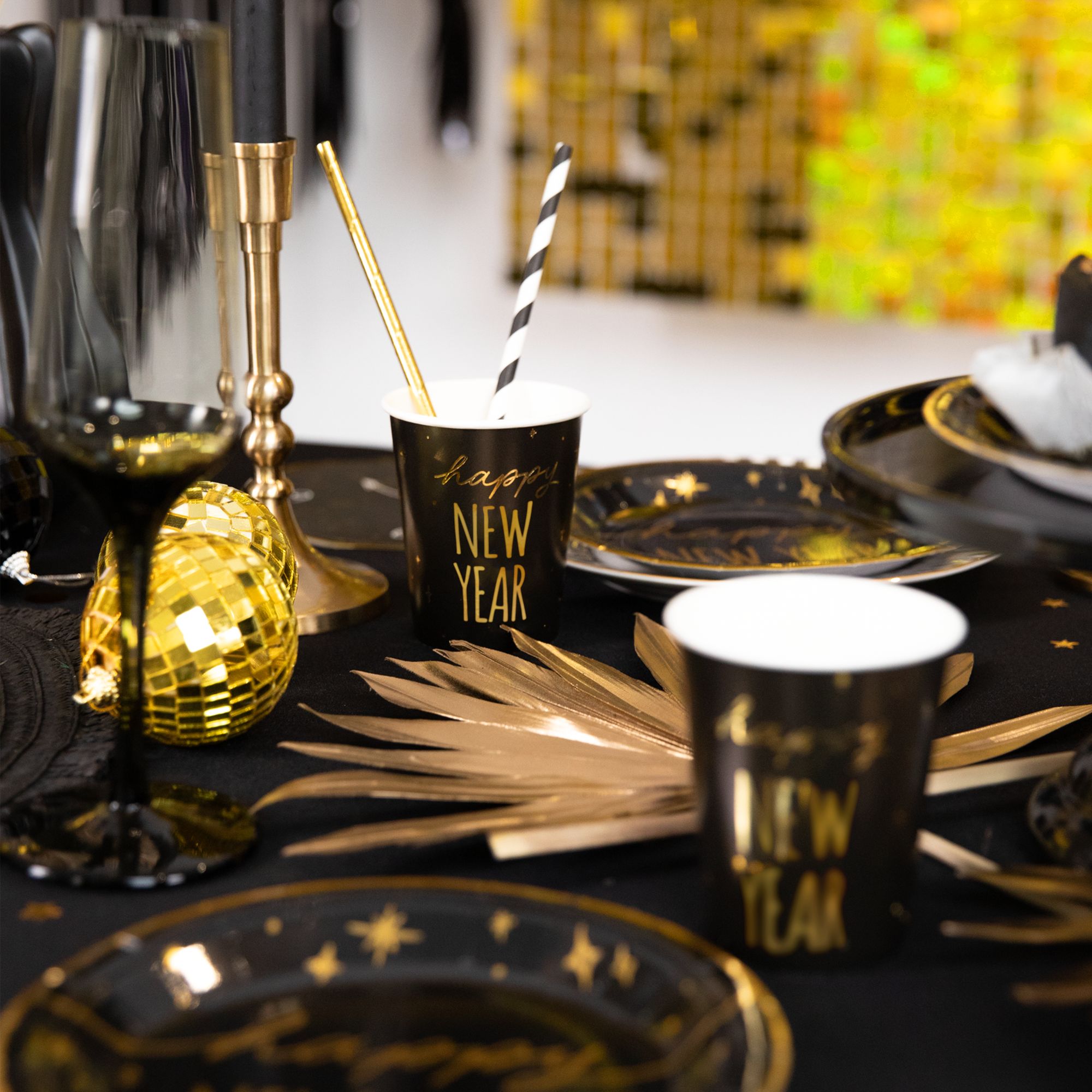 Kubeczki papierowe Happy New Year czarno-złote 220ml 6 szt