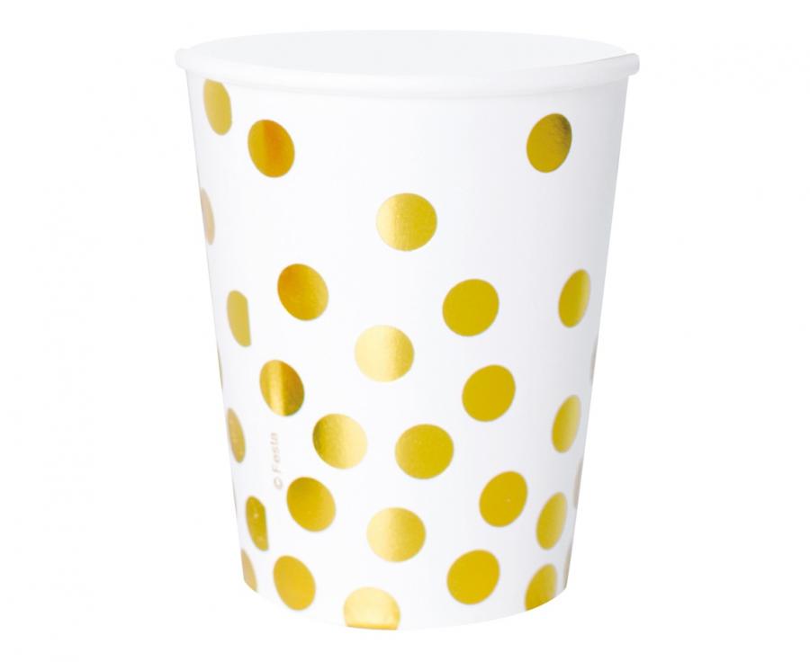 Kubeczki papierowe białe Groszki złote 250 ml 6 szt