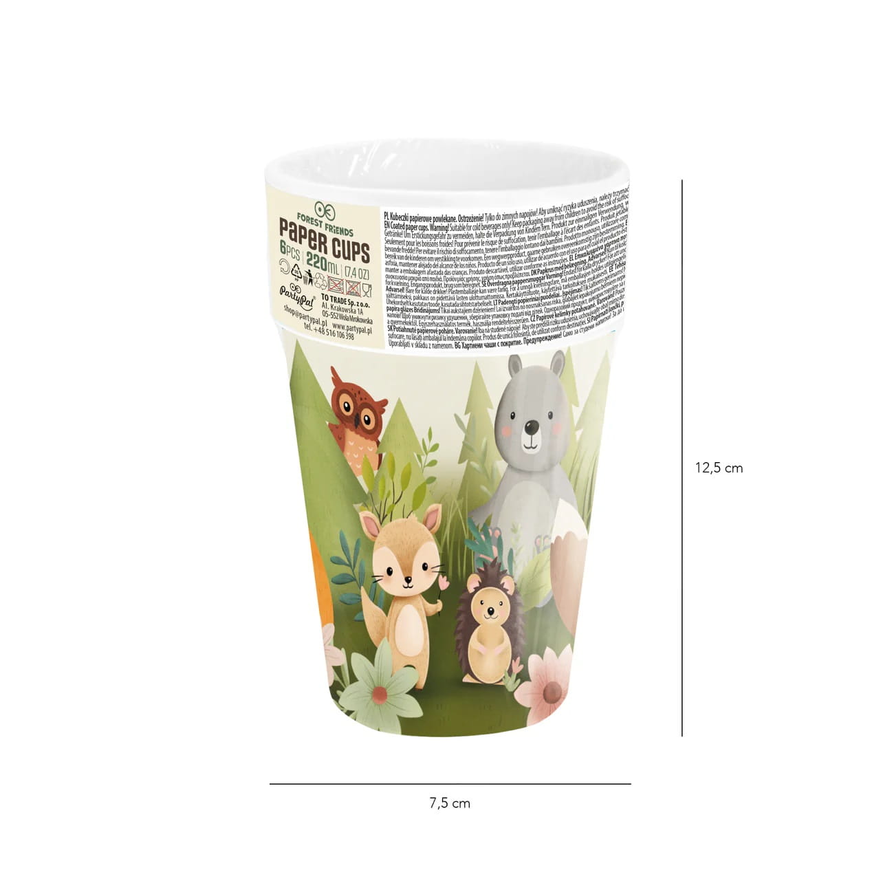 Kubeczki papierowe leśne zwierzątka 220 ml 6 szt