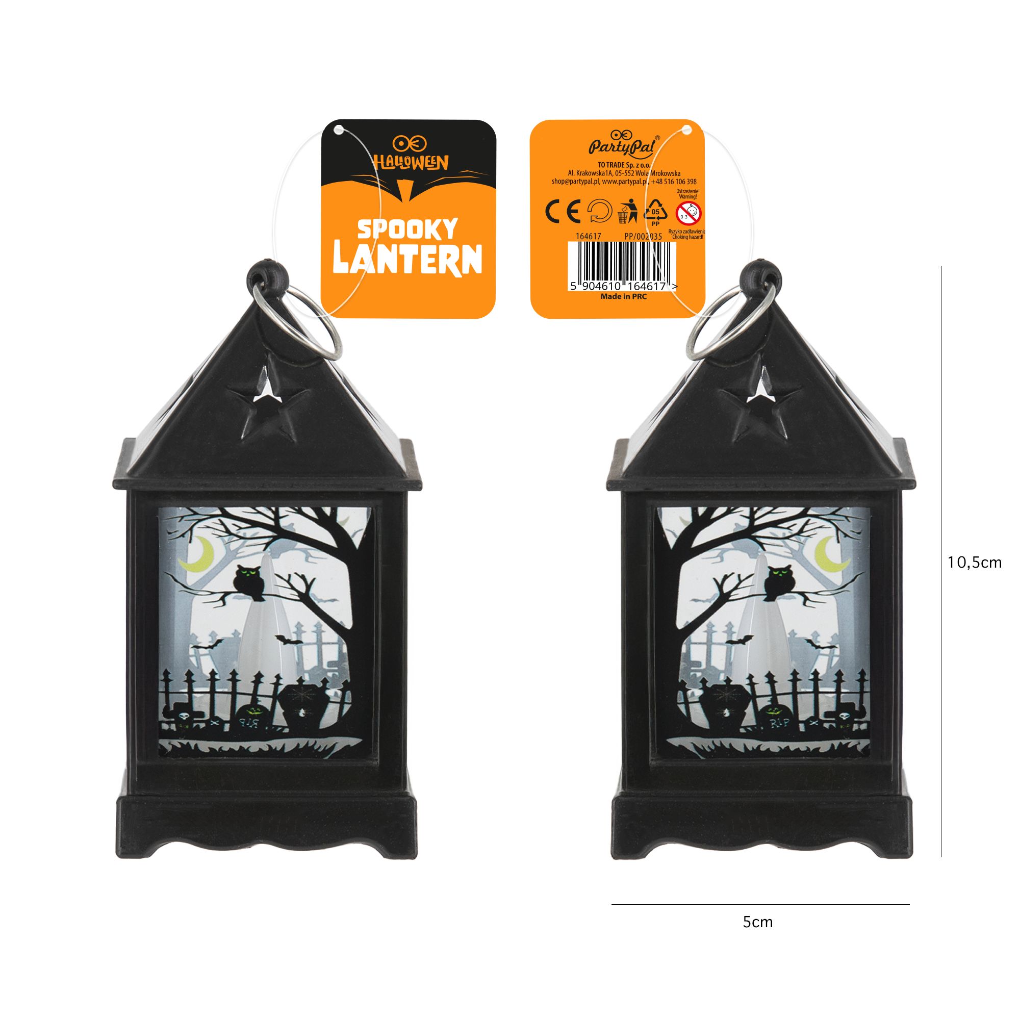 Latarenka LED Halloween to idealna dekoracja, która wprowadzi do Twojego domu wyjątkowy, tajemniczy klimat. Jej czarne wykończenie i zdobienia przedstawiające drzewa, nietoperze, sowy oraz nagrobki sprawiają, że doskonale podkreśla atmosferę wieczornych przyjęć i zabaw halloweenowych. Dzięki delikatnemu światłu LED latarenka tworzy przyjemną, nastrojową poświatę, która świetnie komponuje się z innymi ozdobami.