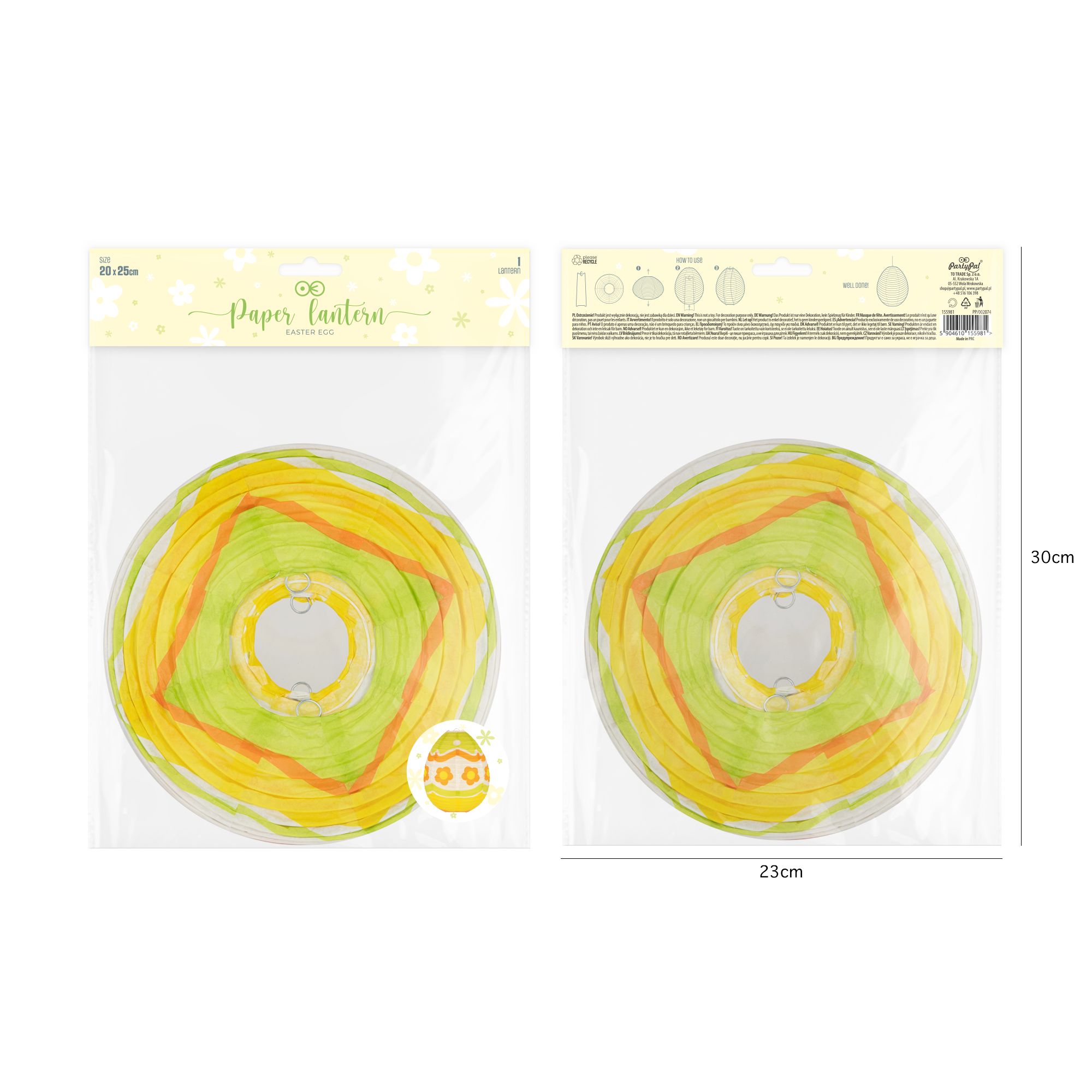 Lampion papierowy Wielkanocne Jajko Pisanka żółty 25 cm 1 szt