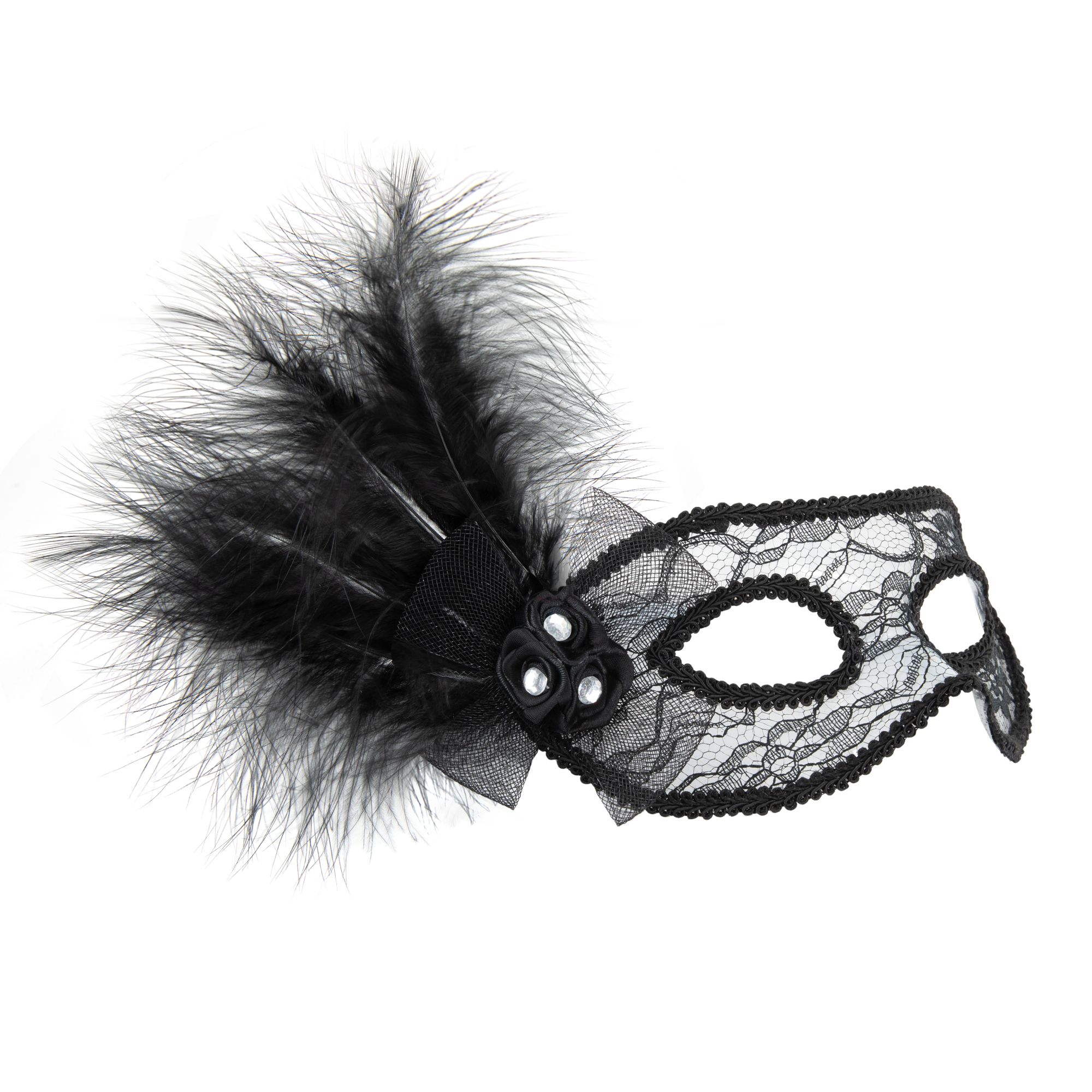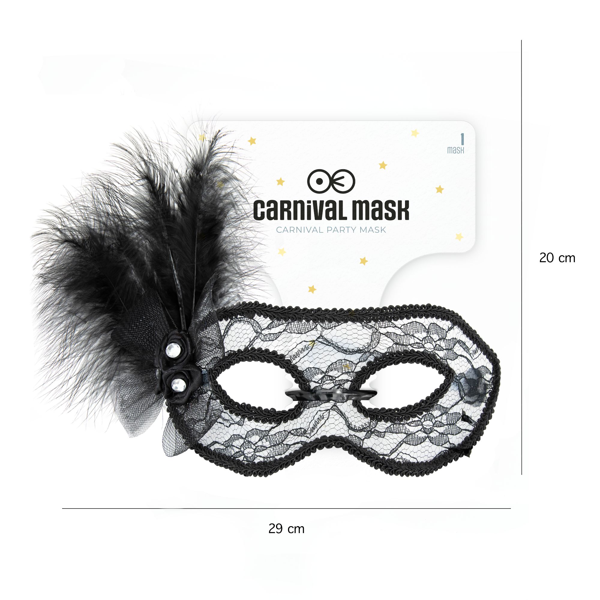 Maska karnawałowa koronkowa przezroczysta z piórami czarna