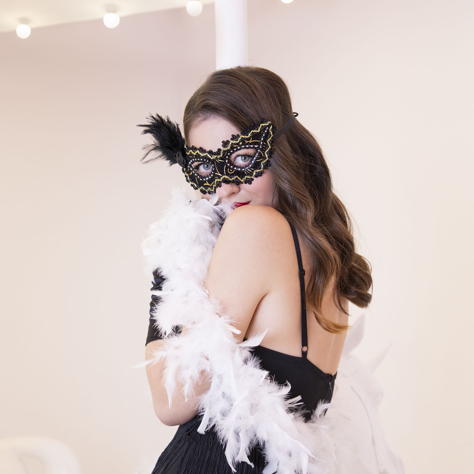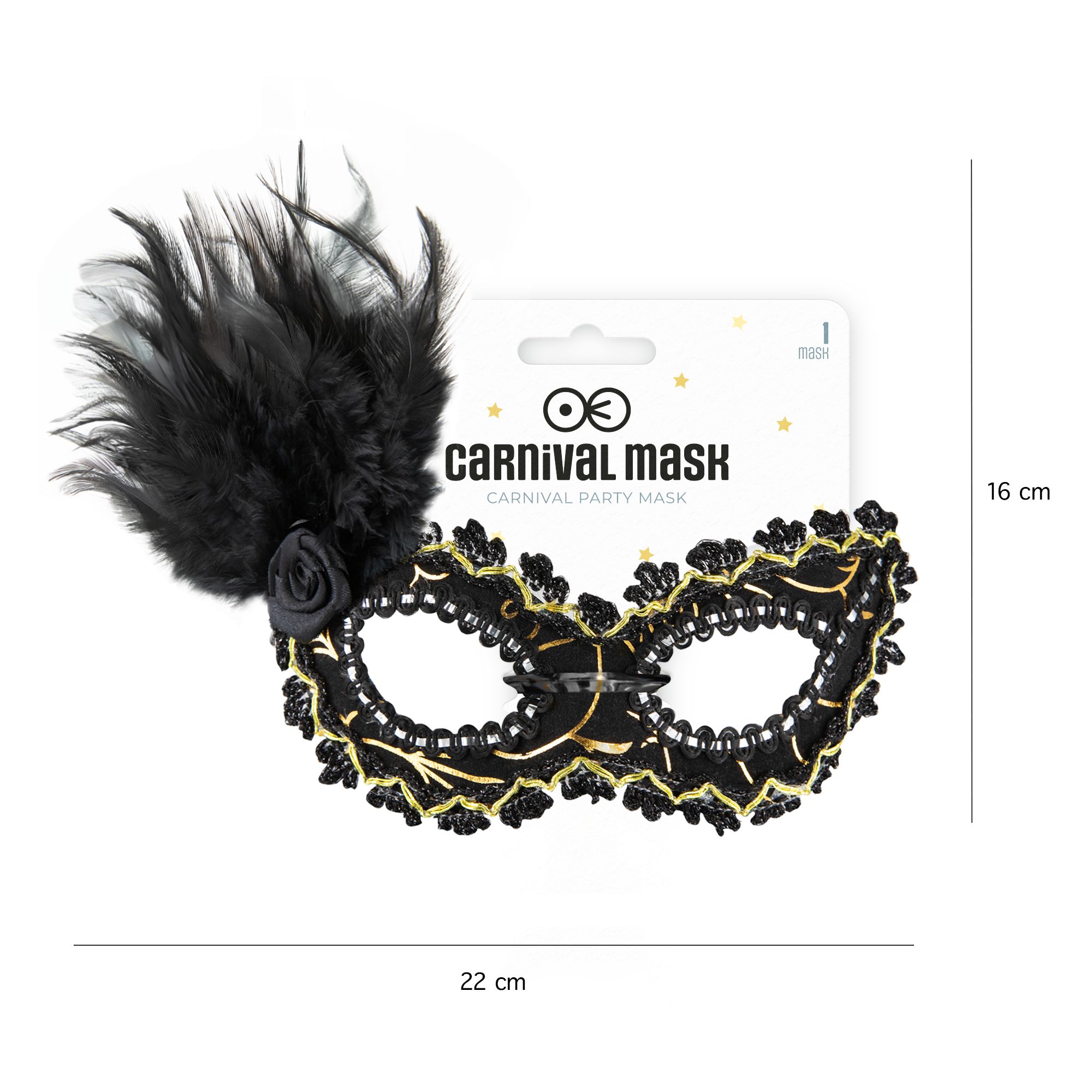 Maska karnawałowa z piórami czarno-złota