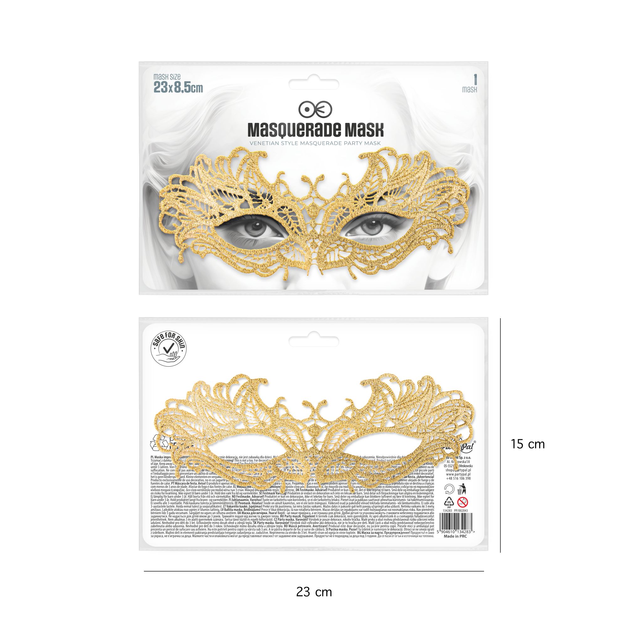 Maska wenecka koronkowa złota