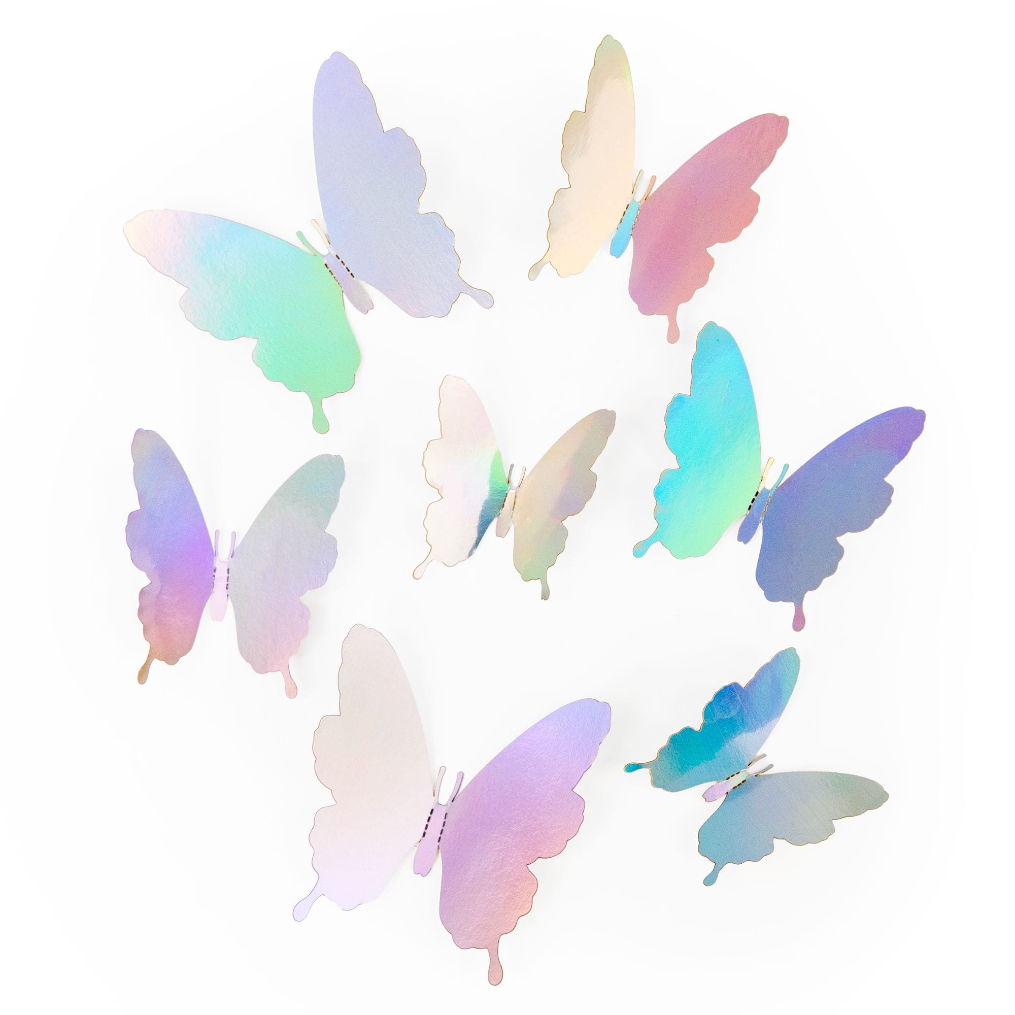 Naklejki na ścianę 3D Motyle holograficzne srebrne 12 szt