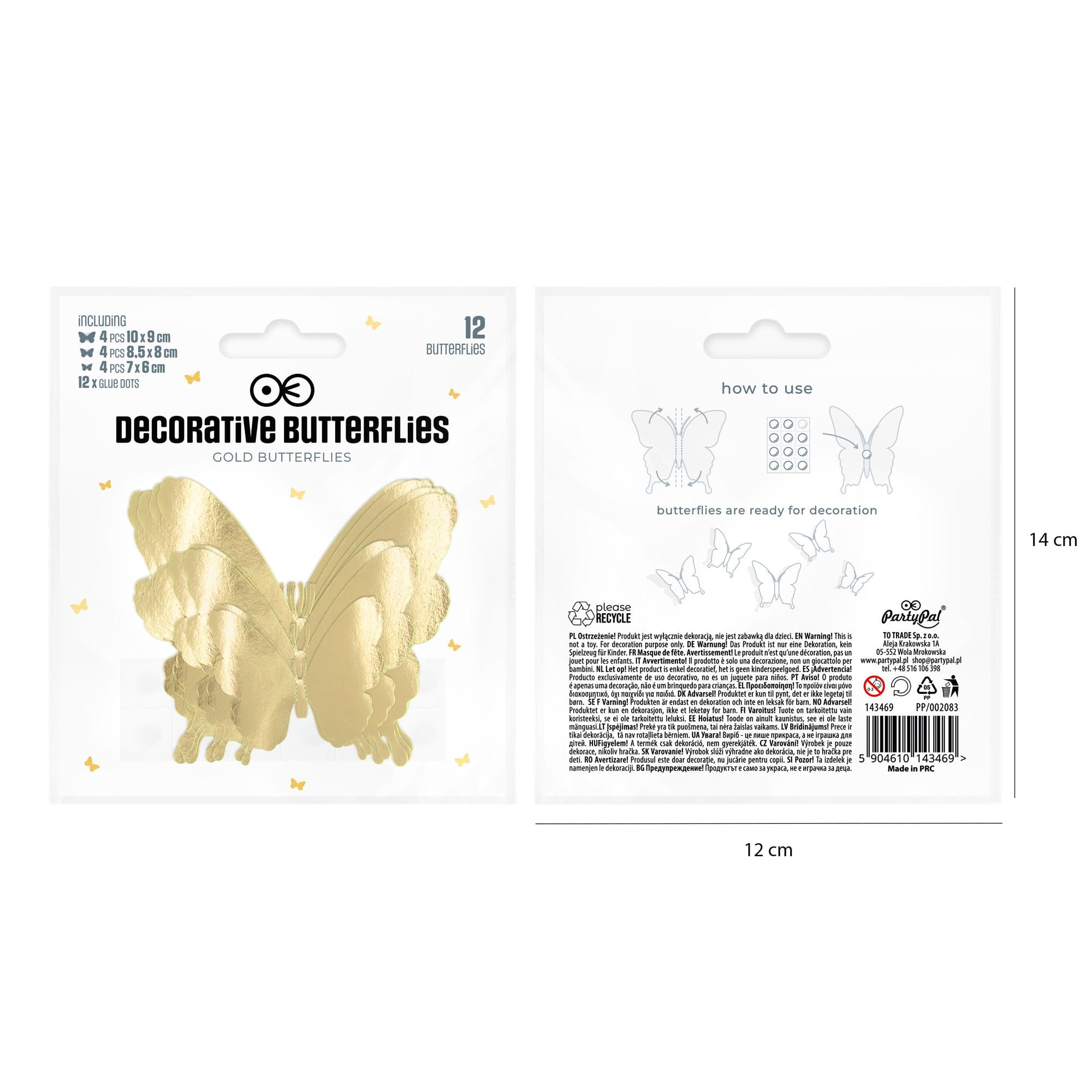 Naklejki na ścianę 3D Motyle złote 12 szt