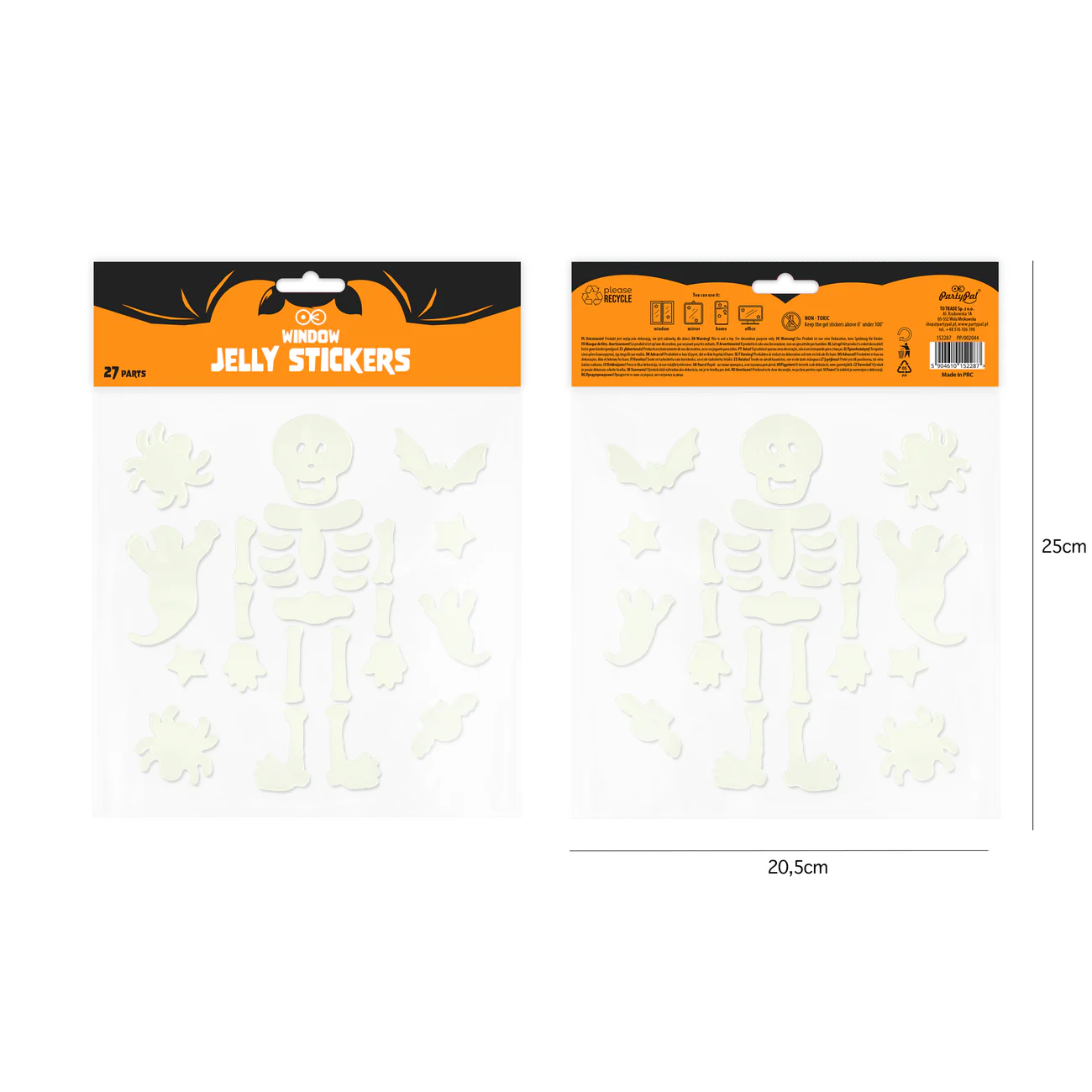 Naklejki żelowe na okno - fluorescencyjny szkielet na Halloween