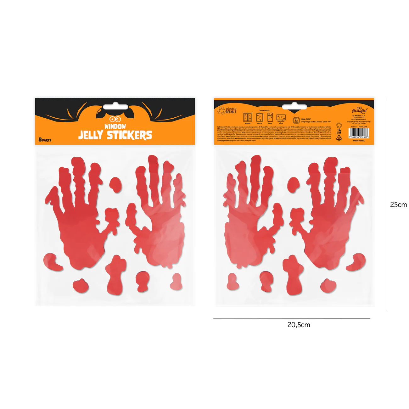 Naklejki żelowe na okno - krwawe ślady dłoni na Halloween