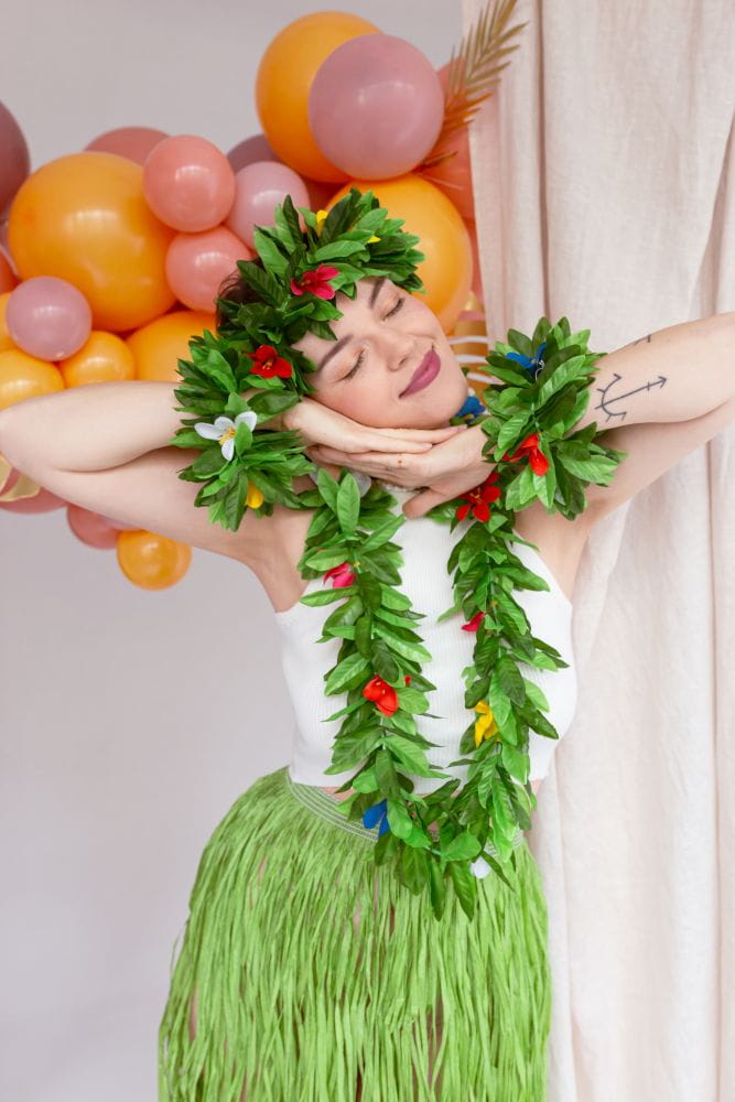Naszyjnik hawajski wianek bransoletki zestaw liście aloha