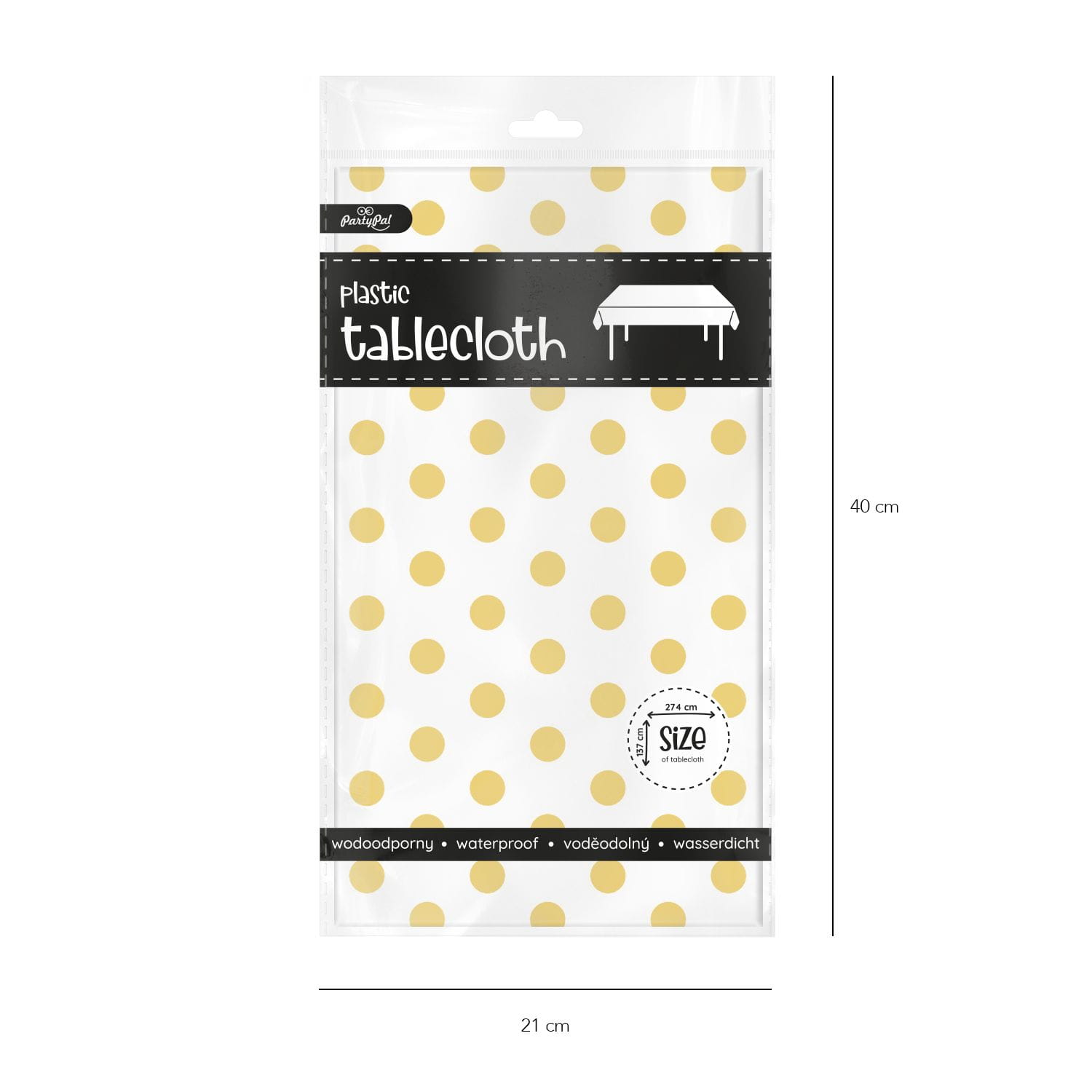 Obrus chrom złoty w kropki 137 cm x 274 cm