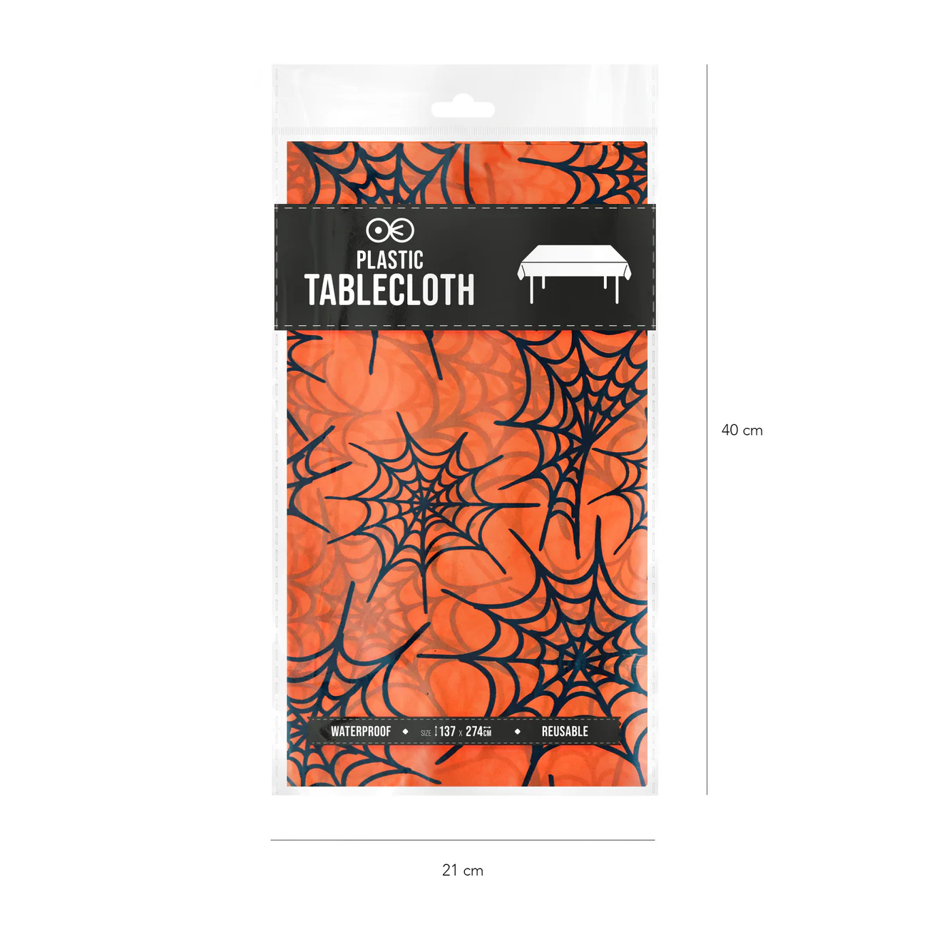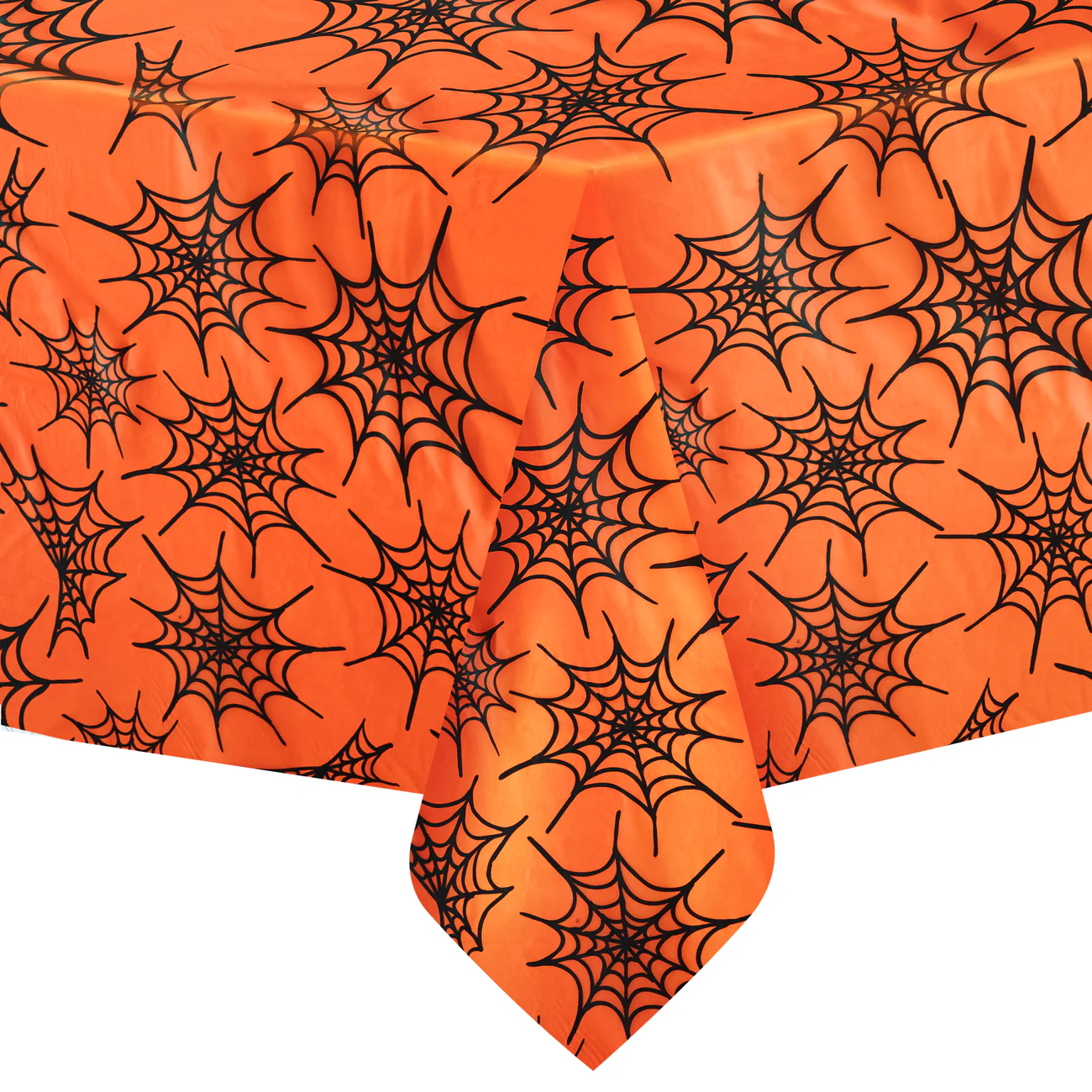 Obrus foliowy czarno pomarańczowy w pajęczyny na Halloween 137 cm x 274 cm