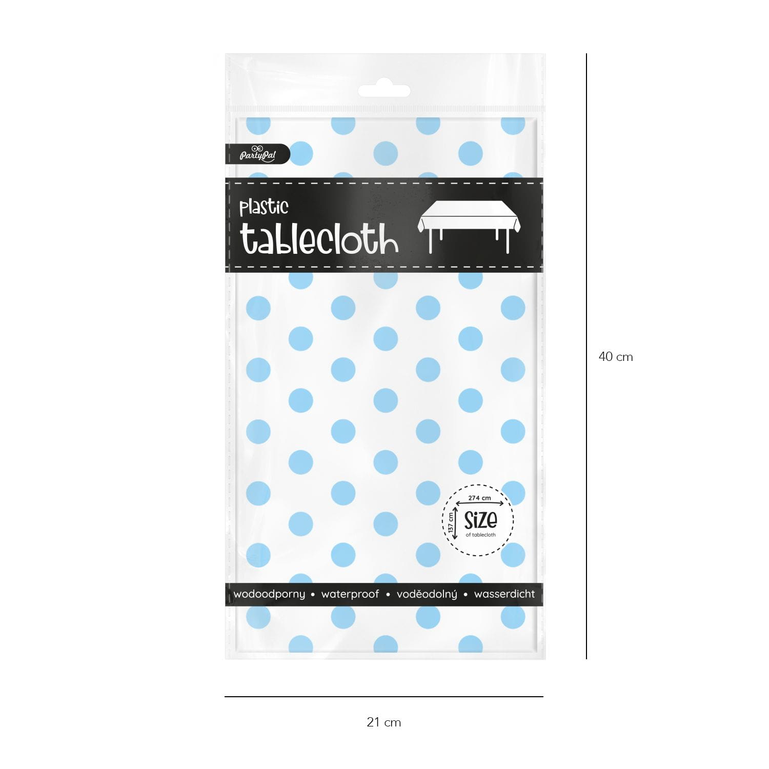 Obrus niebieski w kropki 137 cm x 274 cm