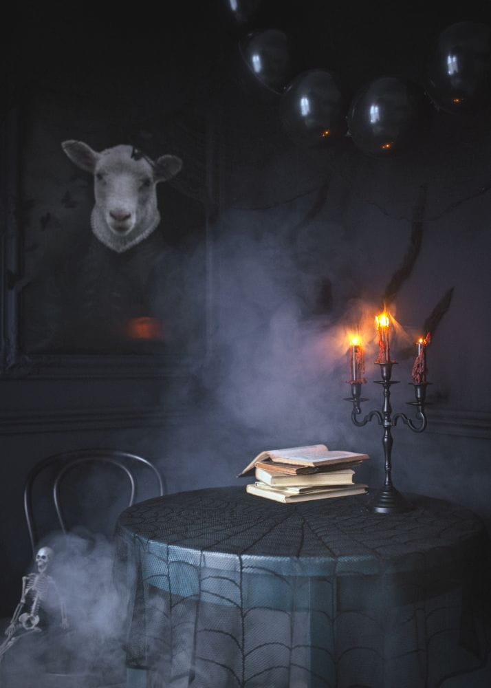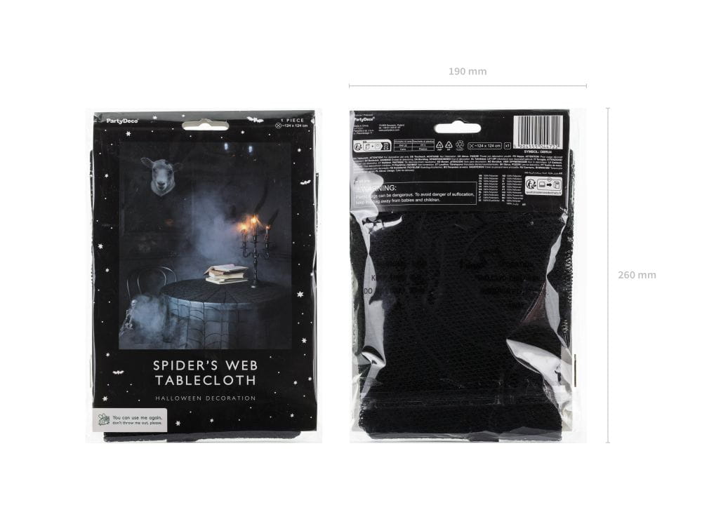 Obrus okrągły czarna pajęczyna na halloween 124 cm