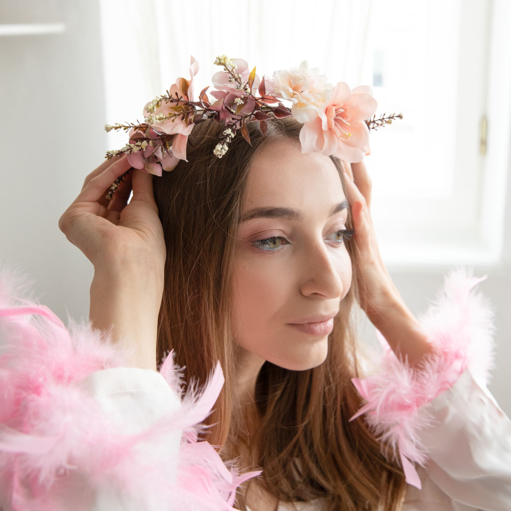 Opaska na głowę Wianek brzoskwiniowo-różowy
