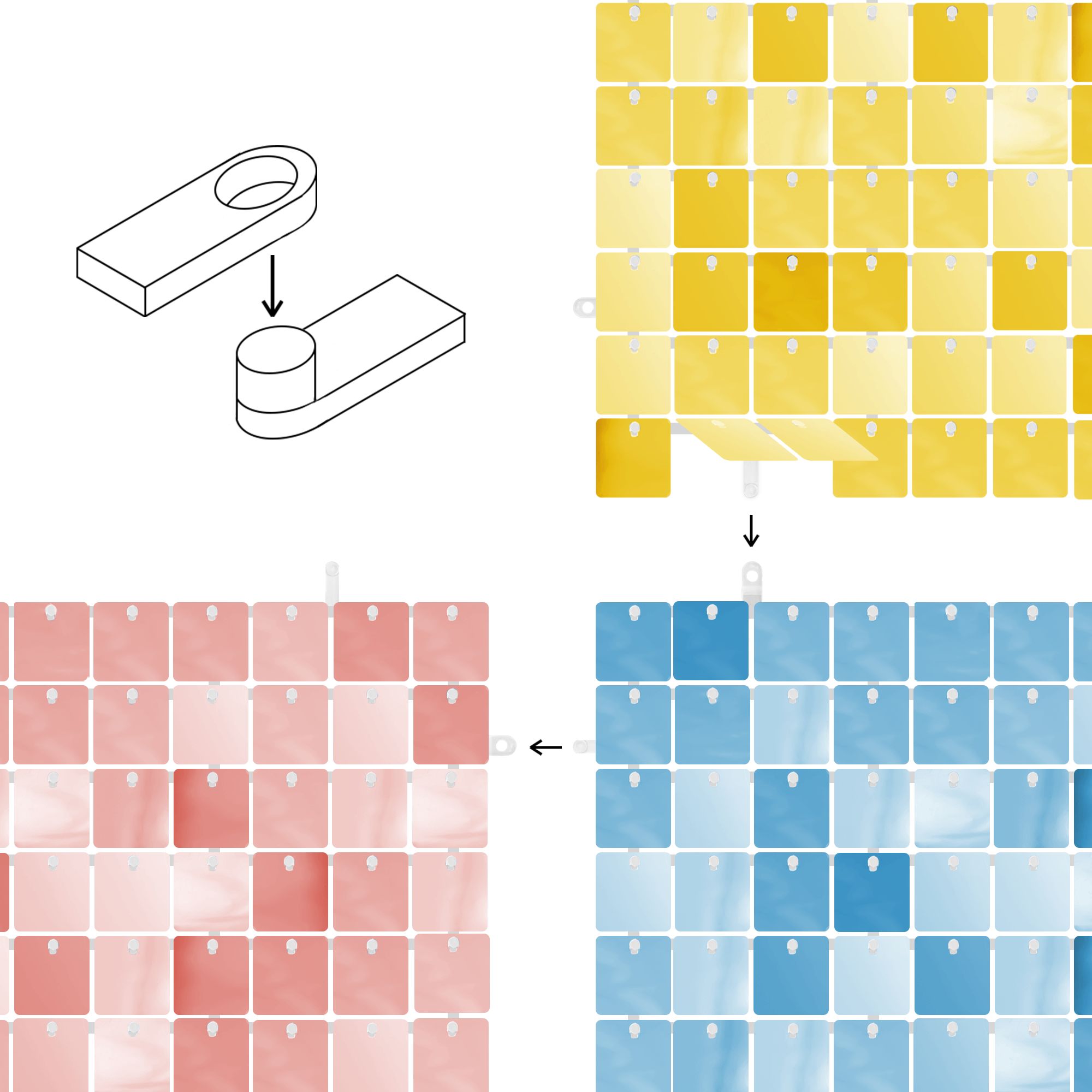 Seria paneli dekoracyjnych, dzięki którym można stworzyć atrakcyjne tło do sesji zdjęciowej lub na wystrzałową imprezę. Każdy panel składa się ze 100 pojedynczych, luźno zawieszonych blaszek, które dają niezwykle ciekawy, trójwymiarowy efekt poruszając się na skutek ruchu powietrza. Cekinowa struktura i połysk sprawiają, że efektownie odbijają światło. Idealne na wesele, urodziny, Sylwester czy zabawę karnawałową.