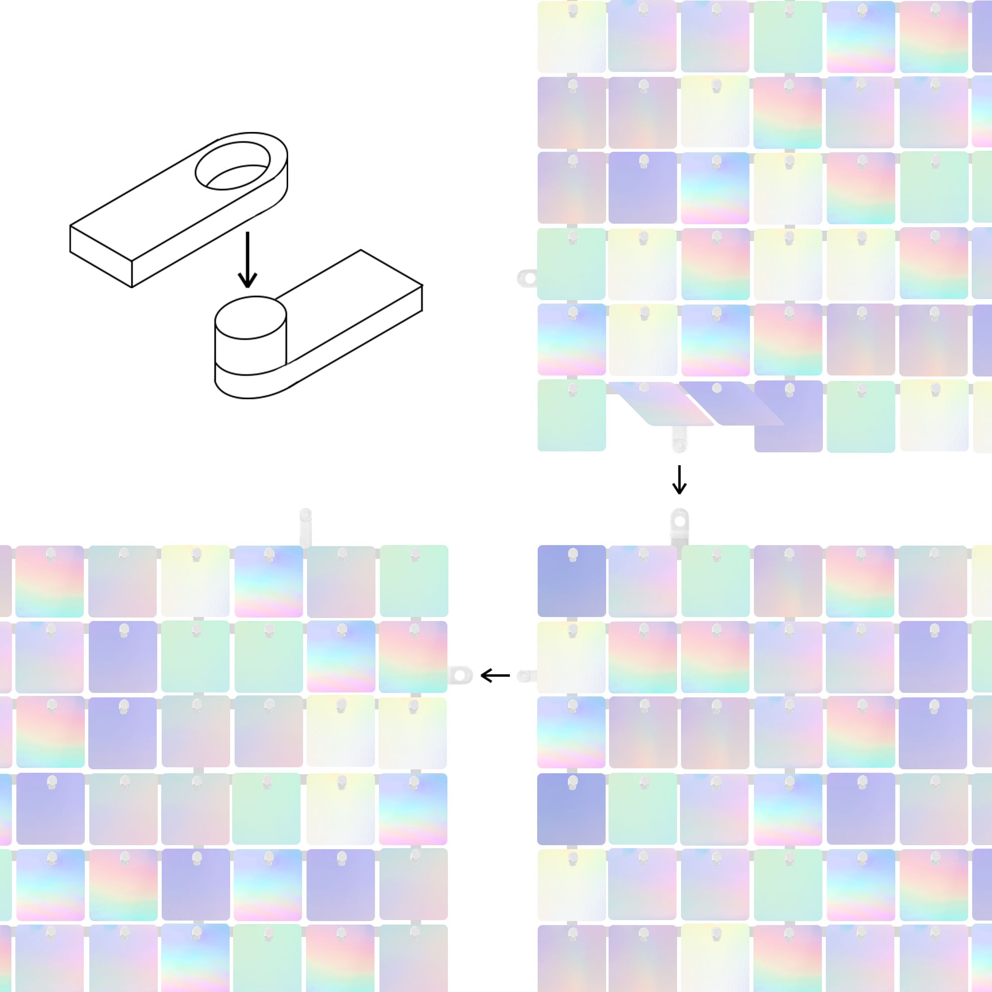 Seria paneli dekoracyjnych, dzięki którym można stworzyć atrakcyjne tło do sesji zdjęciowej lub na wystrzałową imprezę. Każdy panel składa się ze 100 pojedynczych, luźno zawieszonych blaszek, które dają niezwykle ciekawy, trójwymiarowy efekt poruszając się na skutek ruchu powietrza. Cekinowa struktura i połysk sprawiają, że efektownie odbijają światło. Idealne na wesele, urodziny, Sylwester czy zabawę karnawałową.