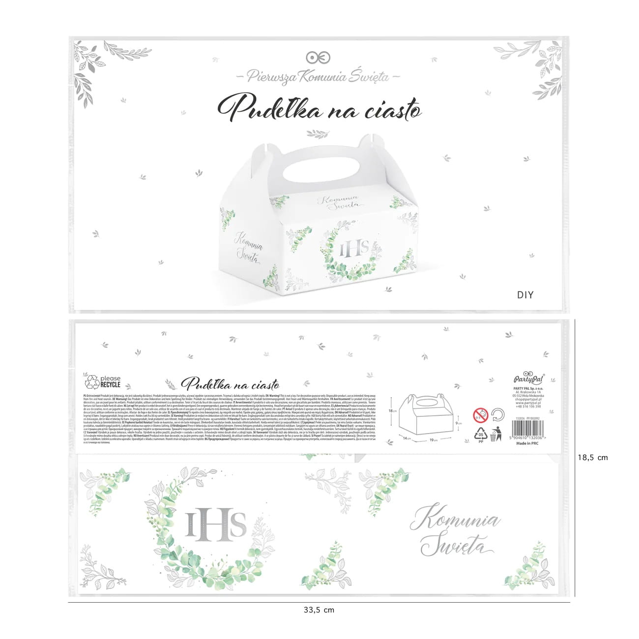 Pudełka na ciasto komunijne IHS Eukaliptus 10 szt