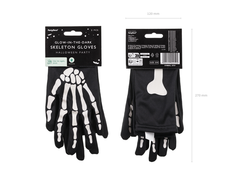 Rękawiczki świecące w ciemności czarne rozmiar S / M