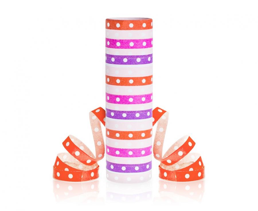 Serpentyna Groszki i paski różowo-czerwone 18p 4m